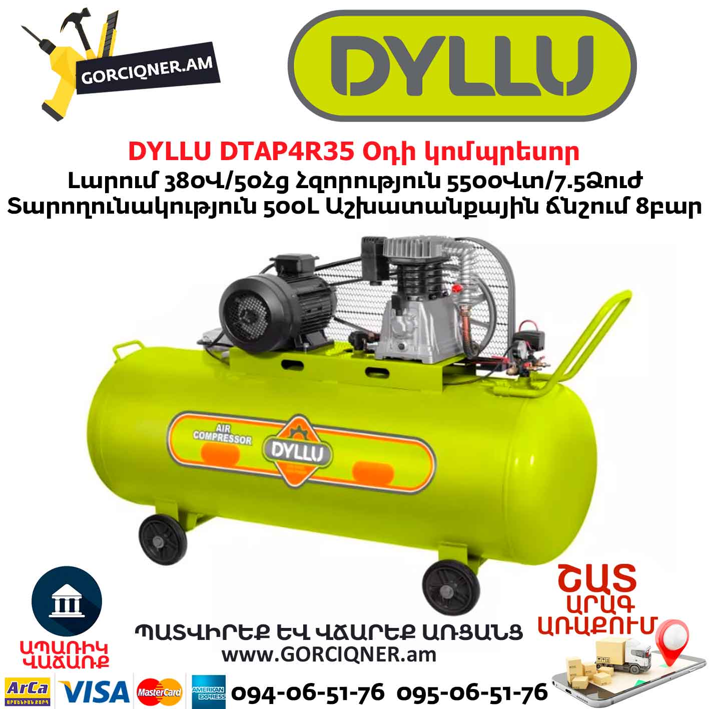 Օդի կոմպրեսոր DYLLU DTAP4R35 500Լ/5500Վտ