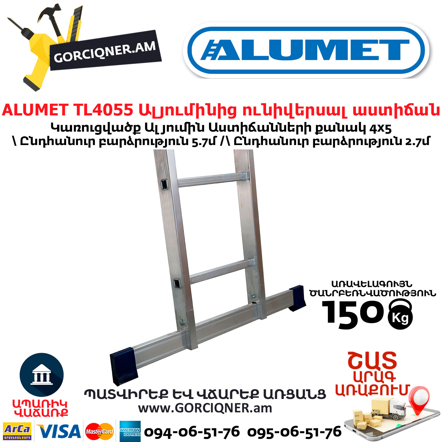 ALUMET TL4055 Ալյումինից ունիվերսալ աստիճան խառաչո