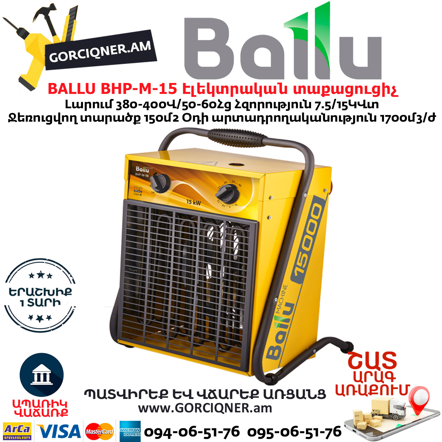 BALLU BHP-M-15 Էլեկտրական փչող տաքացուցիչ 7.5/15Կվտ 380Վ
