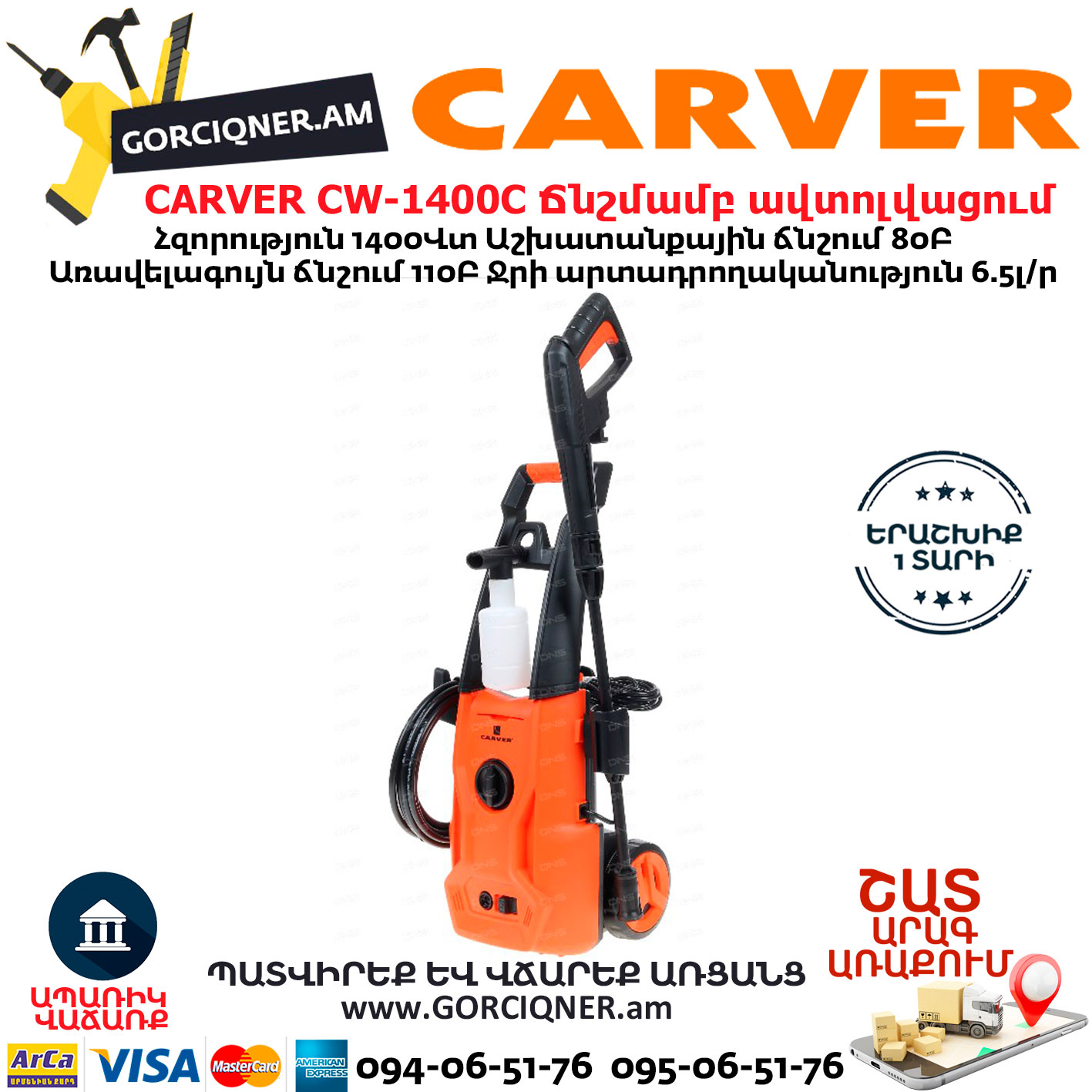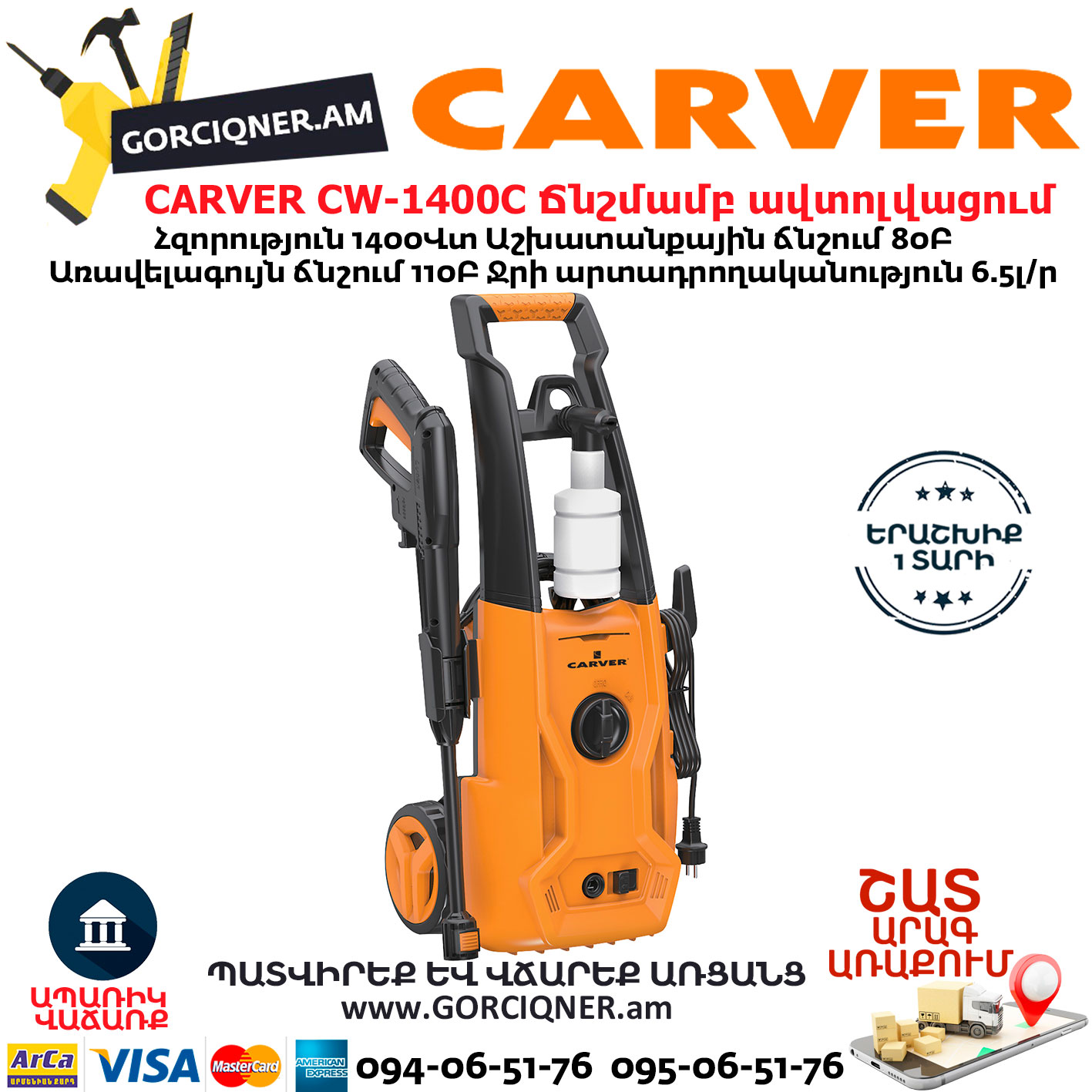 CARVER CW-1400C Բարձր ճնշմամբ ավտոլվացում