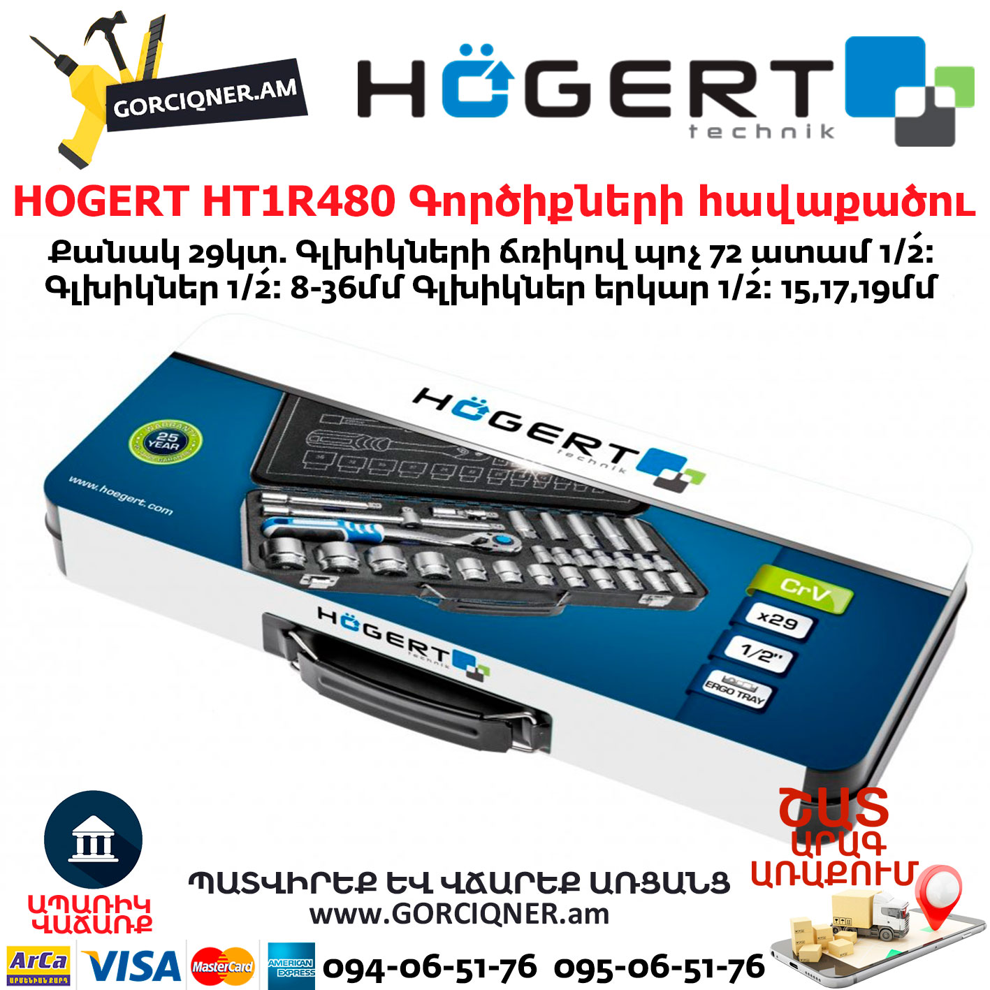 HOGERT HT1R480 Գործիքների հավաքածու 29կտ 1/2”