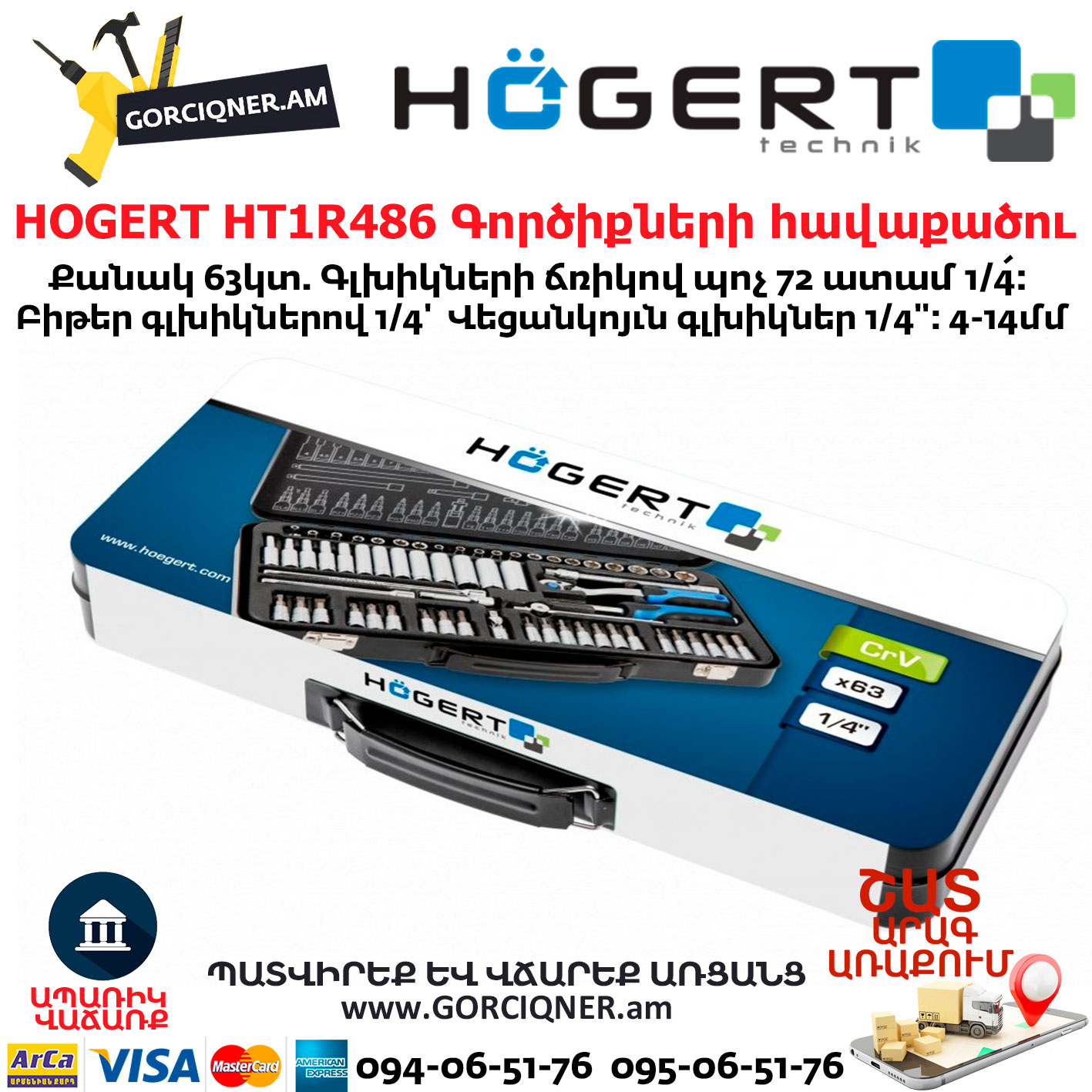 HOGERT HT1R486 Գործիքների հավաքածու 63կտ 1/4”