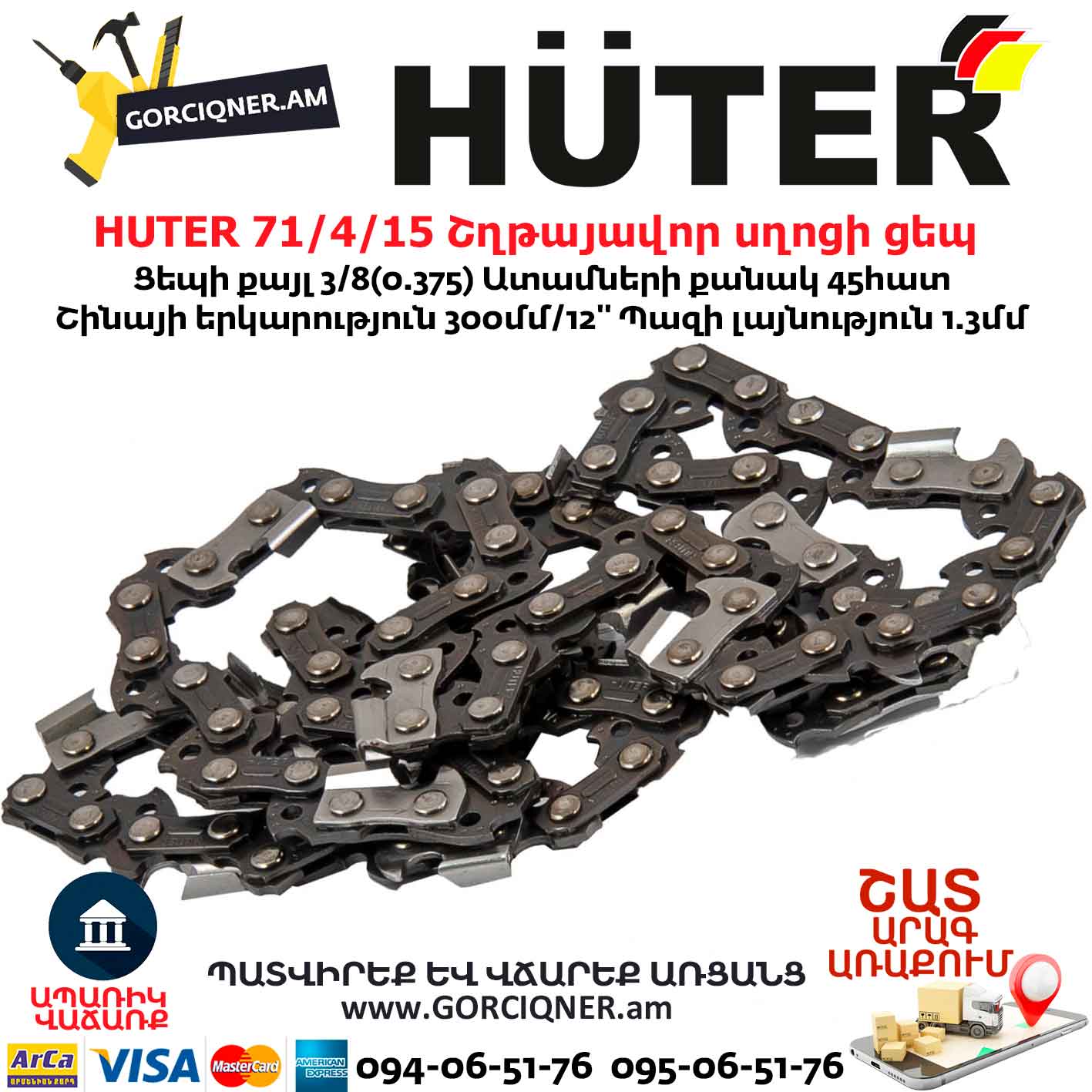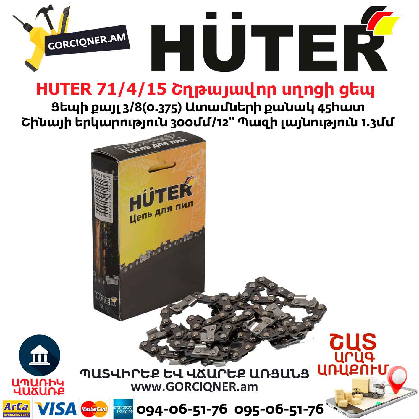 HUTER 71/4/15 C5 Շղթայավոր սղոցի ցեպ 300մմ/45ատամ