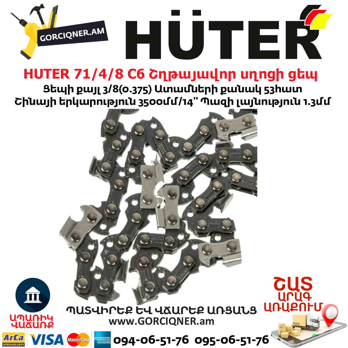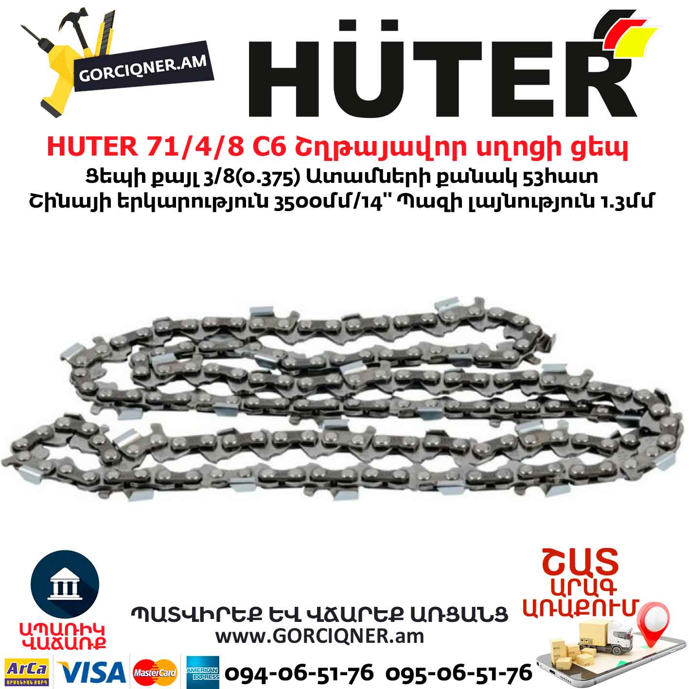 HUTER 71/4/19 C6 Շղթայավոր սղոցի ցեպ 350մմ/53ատամ