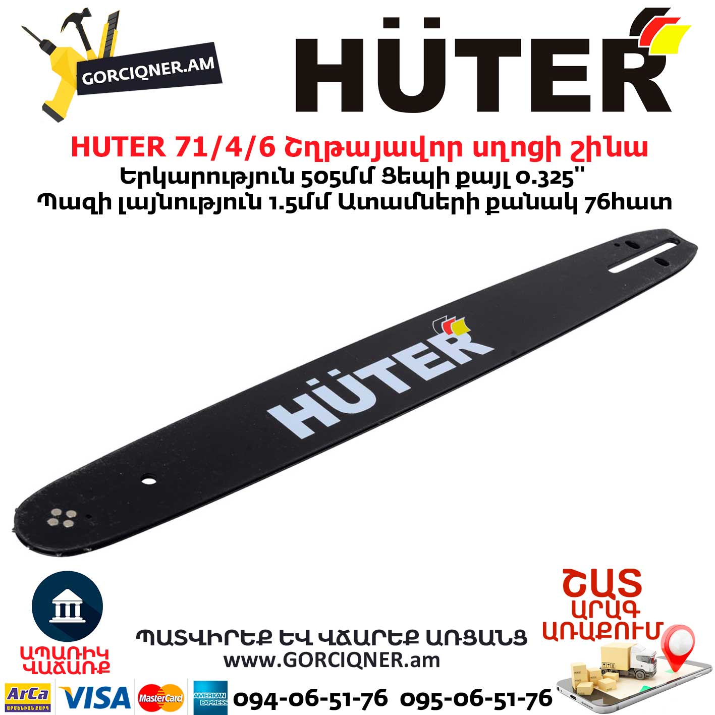 HUTER 71/4/6 Շղթայավոր սղոցի շինա 500մմ