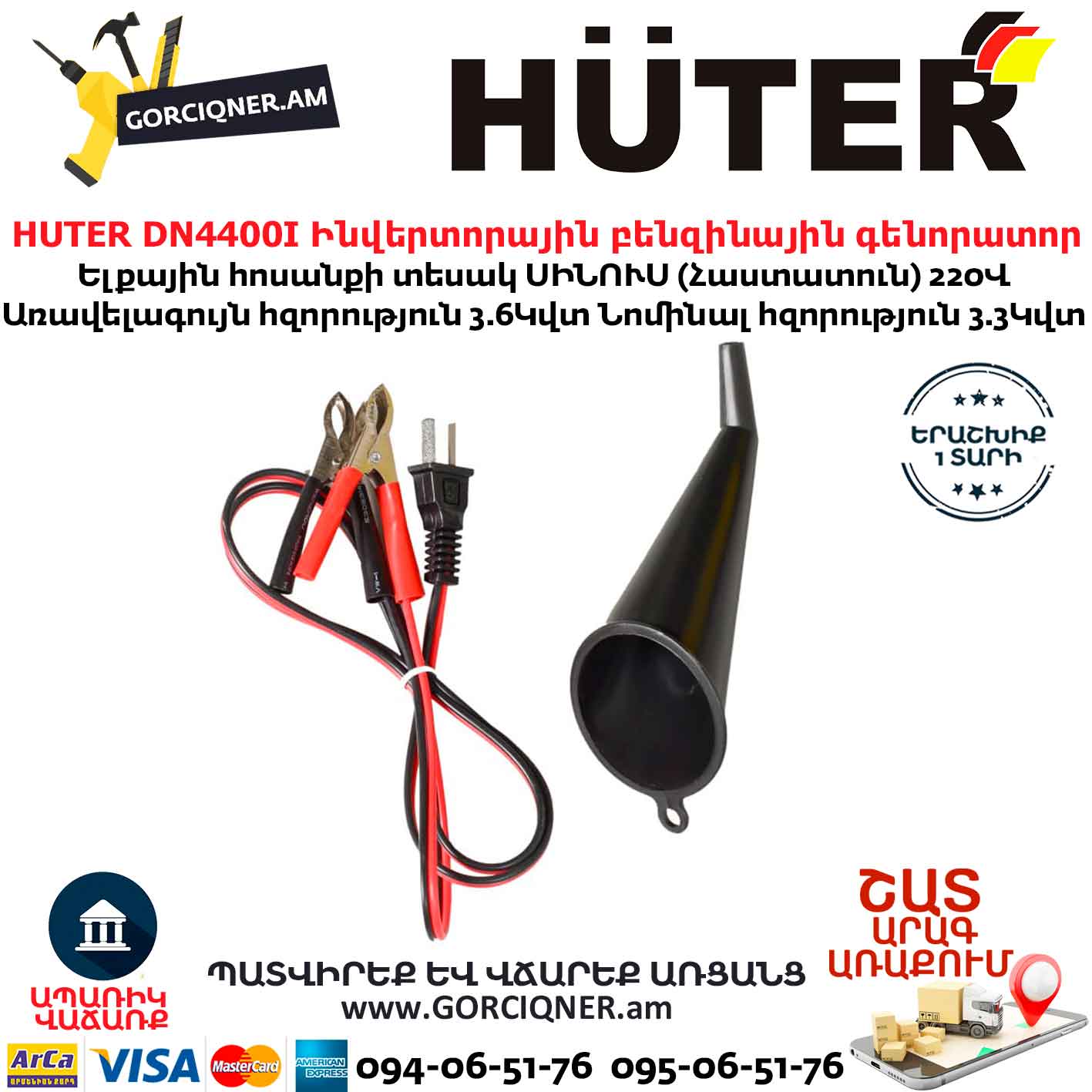 HUTER DN4400I Ինվերտորային բենզինային գեներատոր