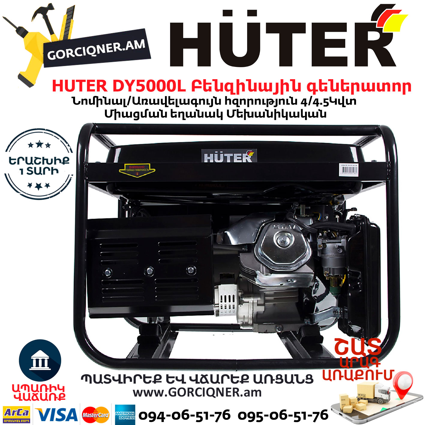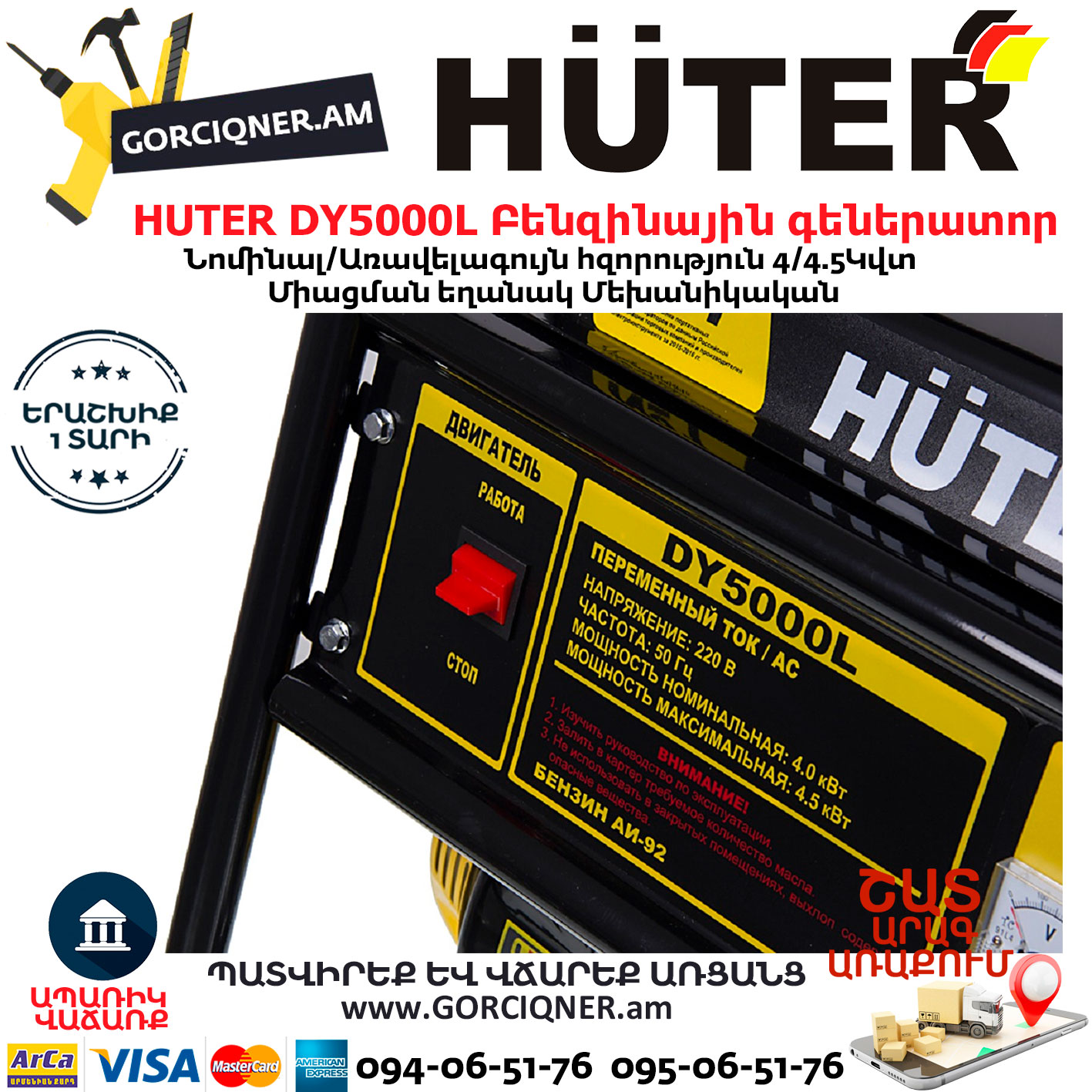 HUTER DY5000L Բենզինային գեներատոր 4.5կվտ 64/1/5