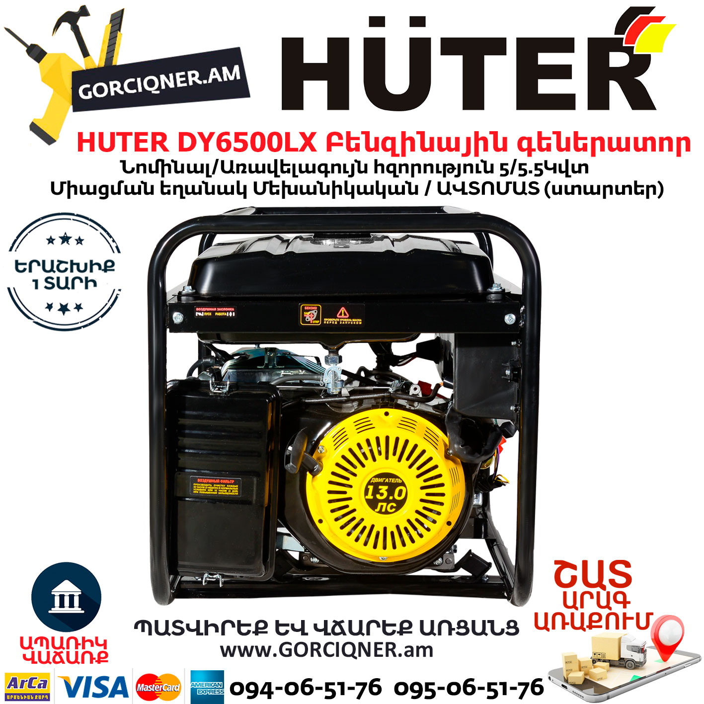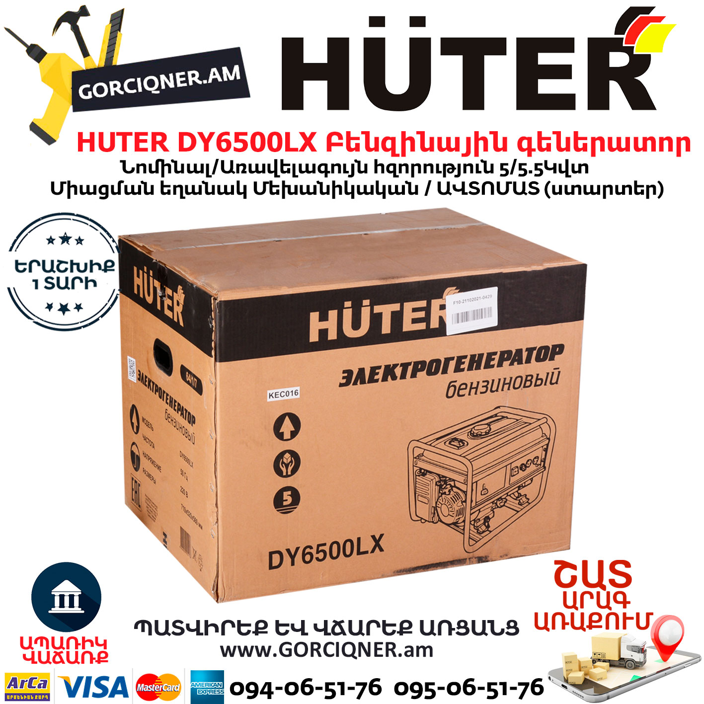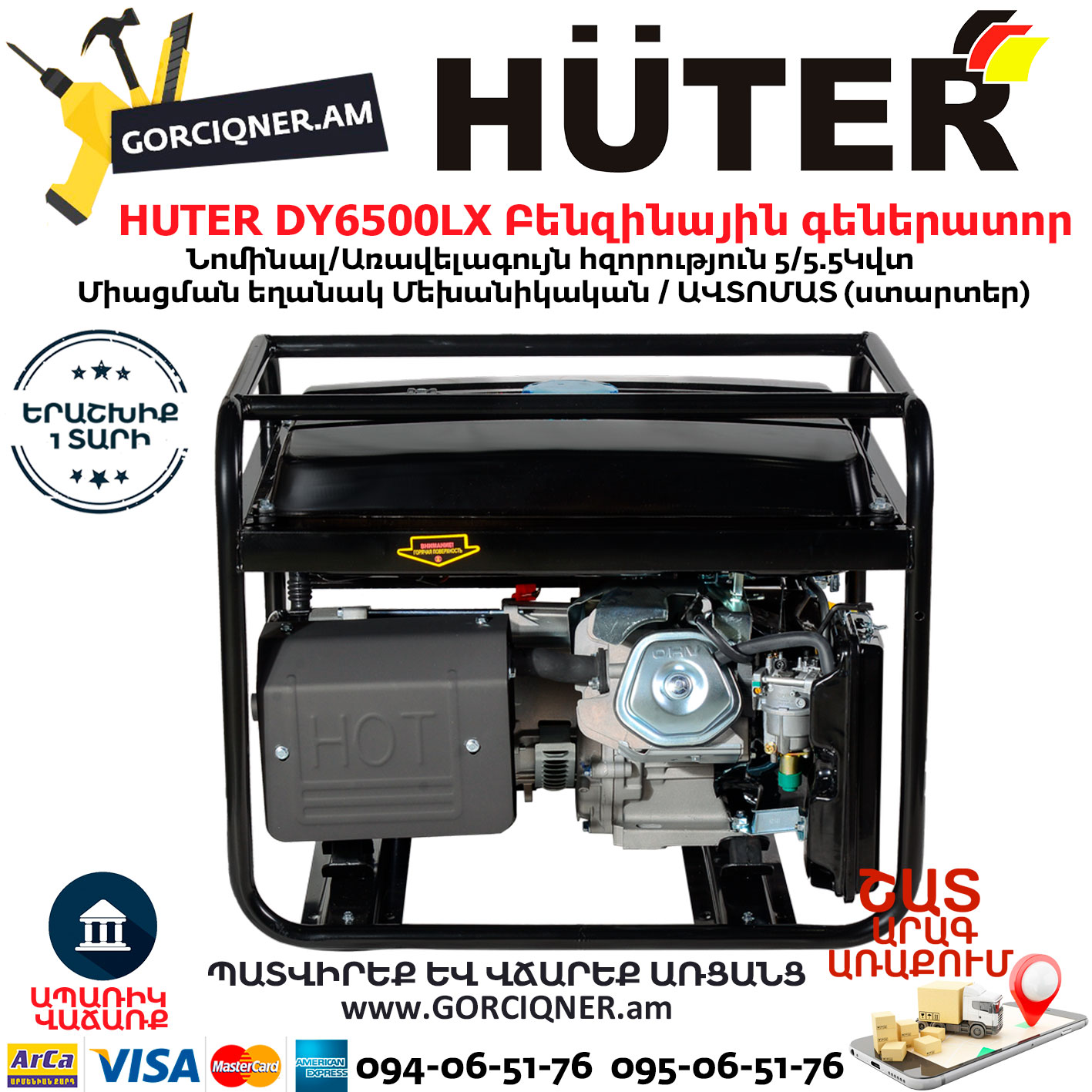 HUTER DY6500LX Բենզինային գեներատոր