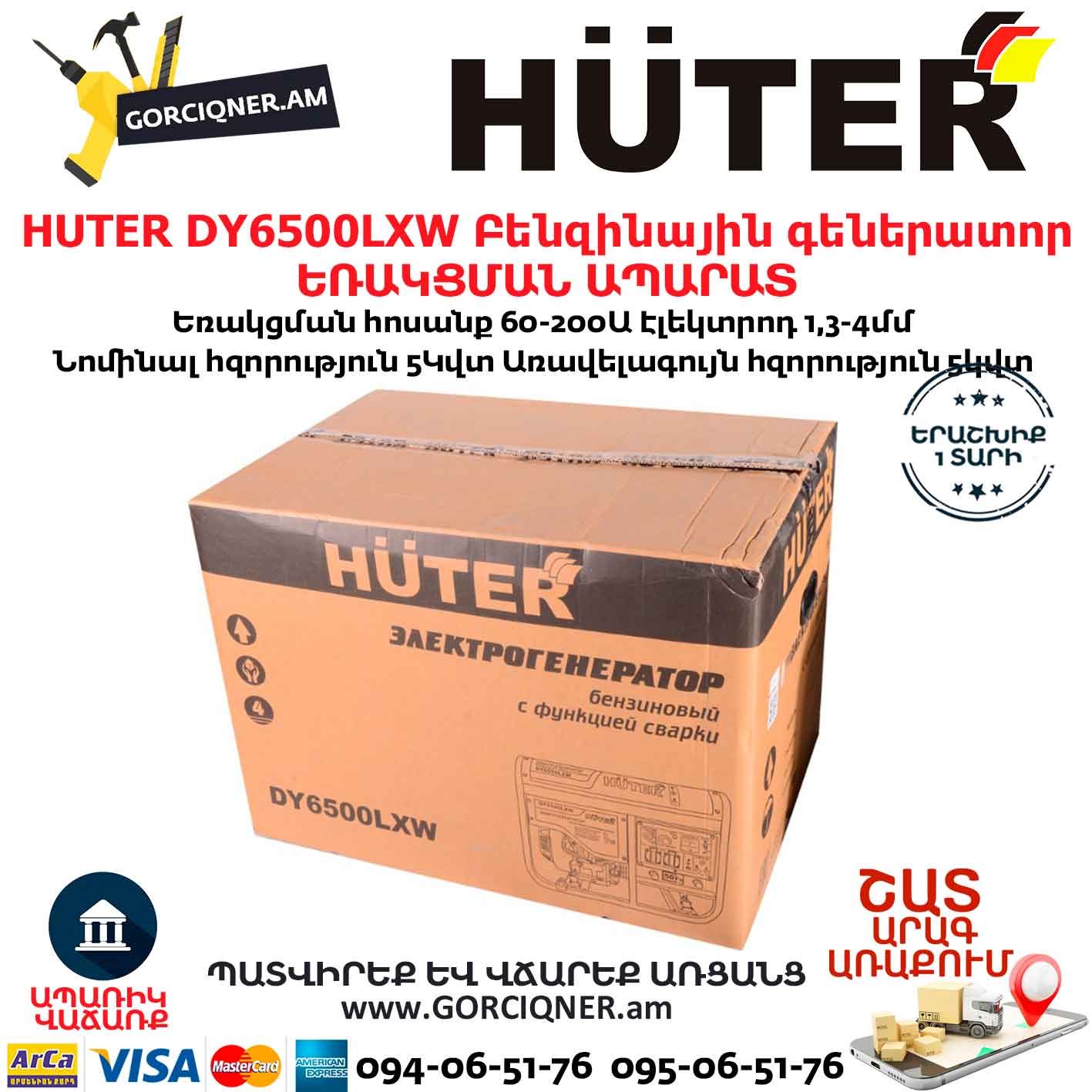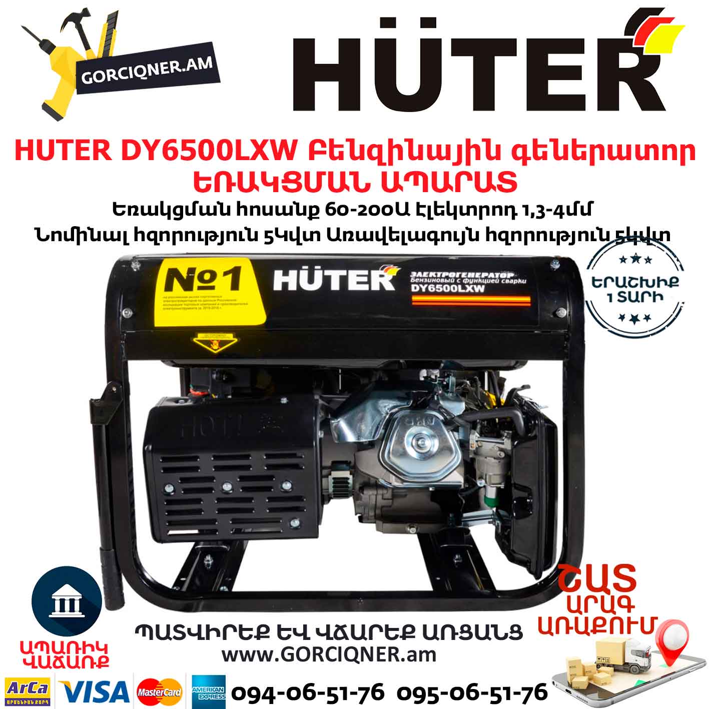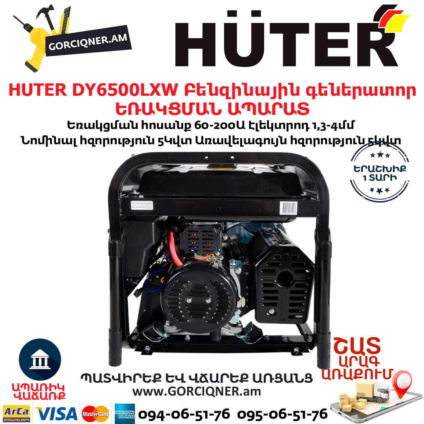 HUTER DY6500LXW Բենզինային գեներատոր / ԵՌԱԿՑՄԱՆ ԱՊԱՐԱՏ