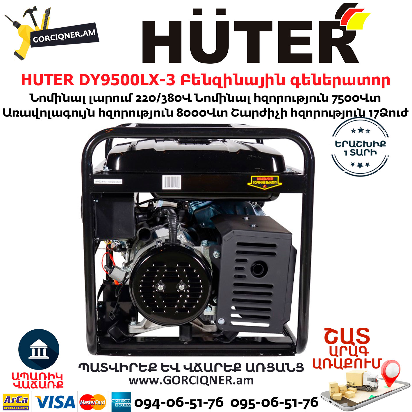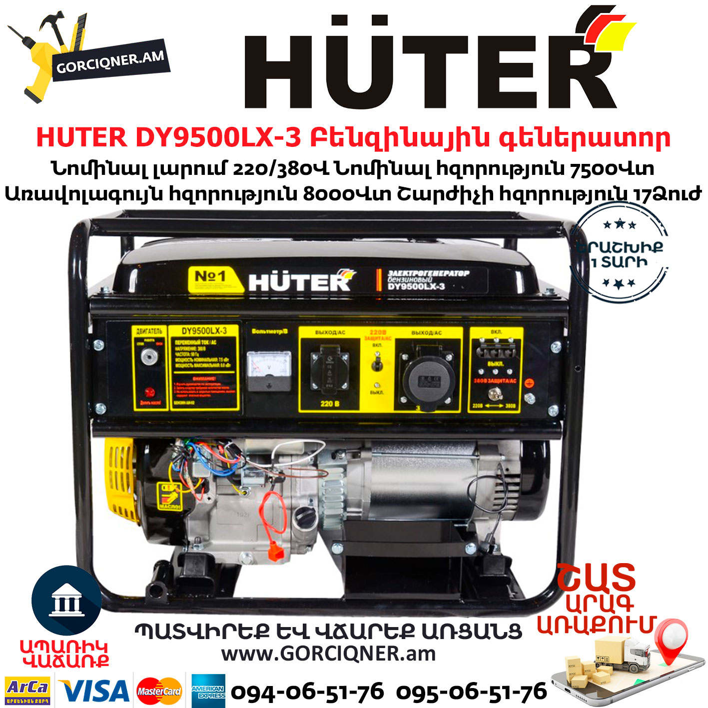 HUTER DY9500LX-3 Բենզինային գեներատոր