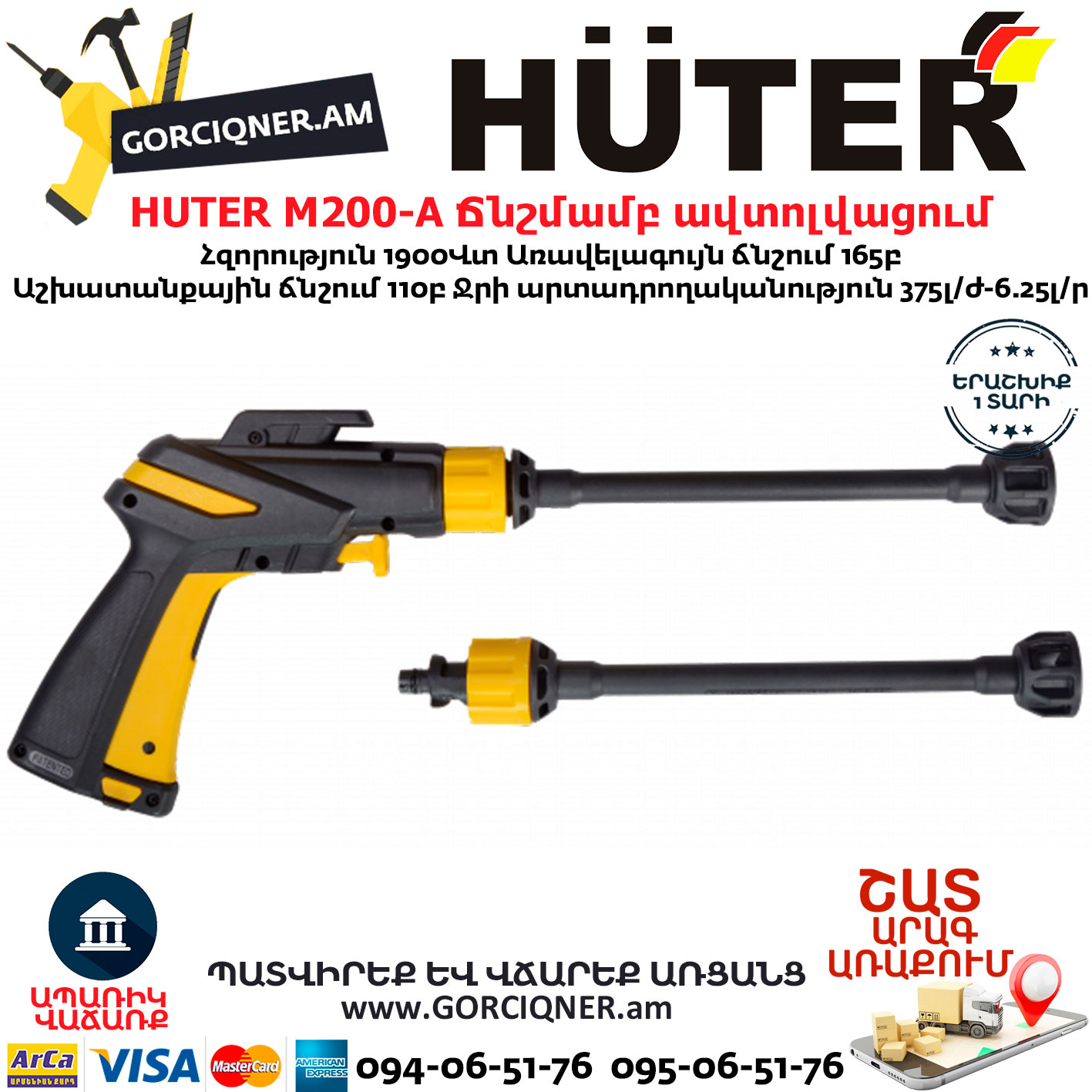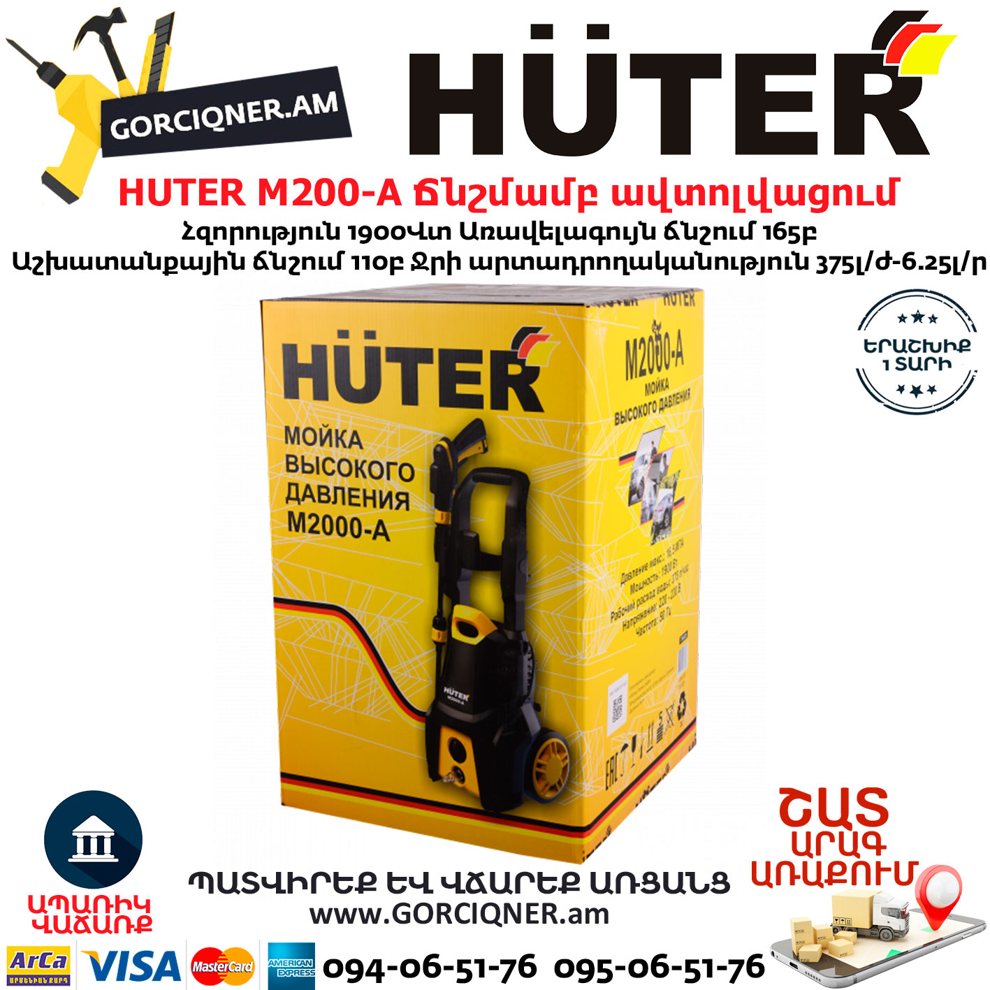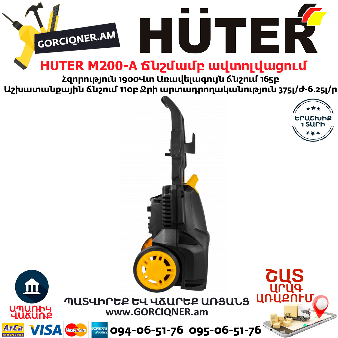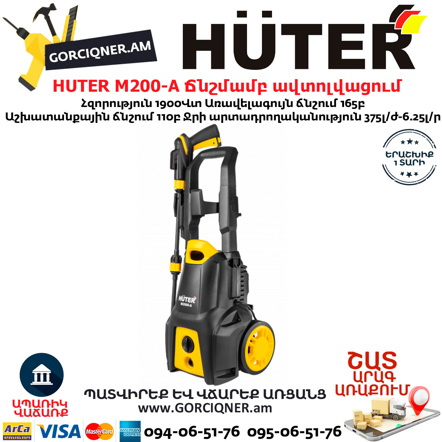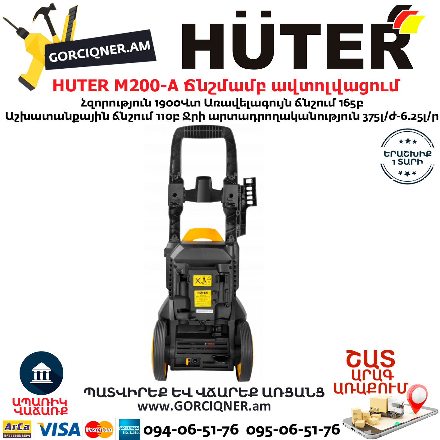 HUTER M200-A Բարձր ճնշմամբ ավտոլվացում 165բ/1900վտ 70/8/25