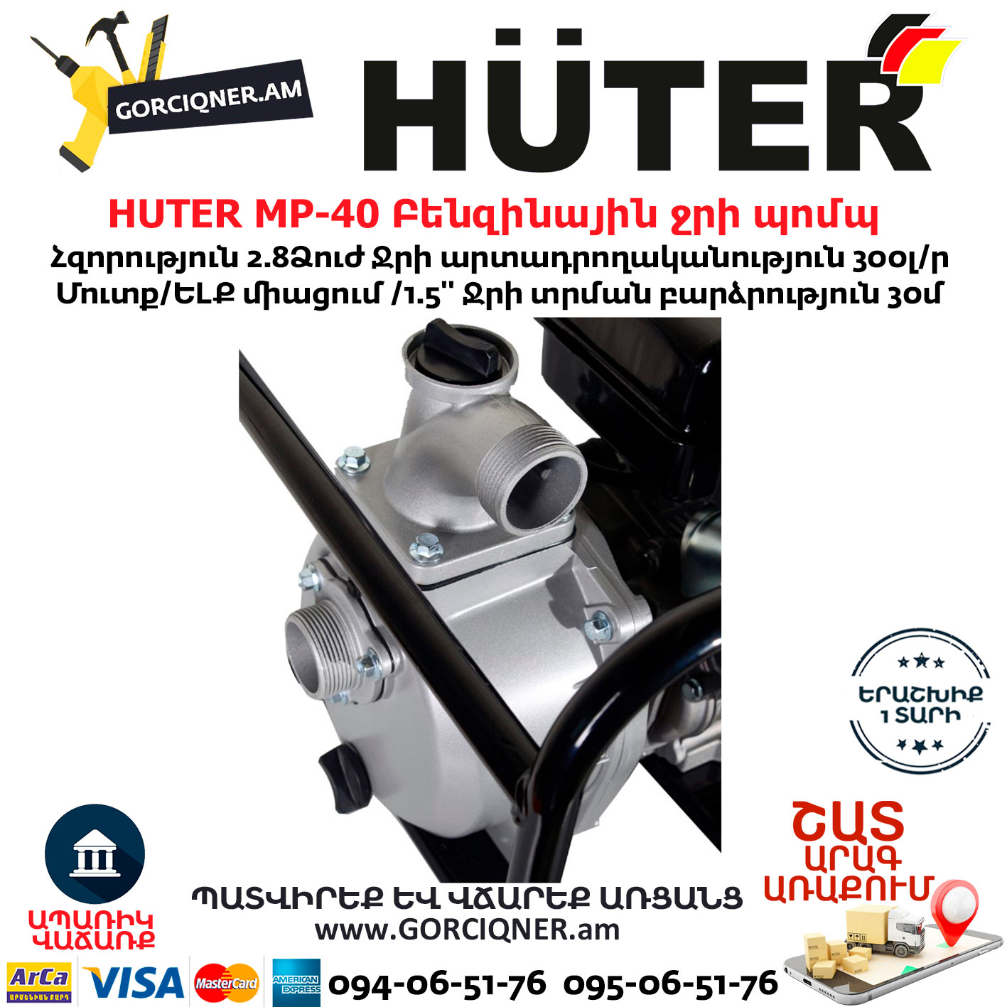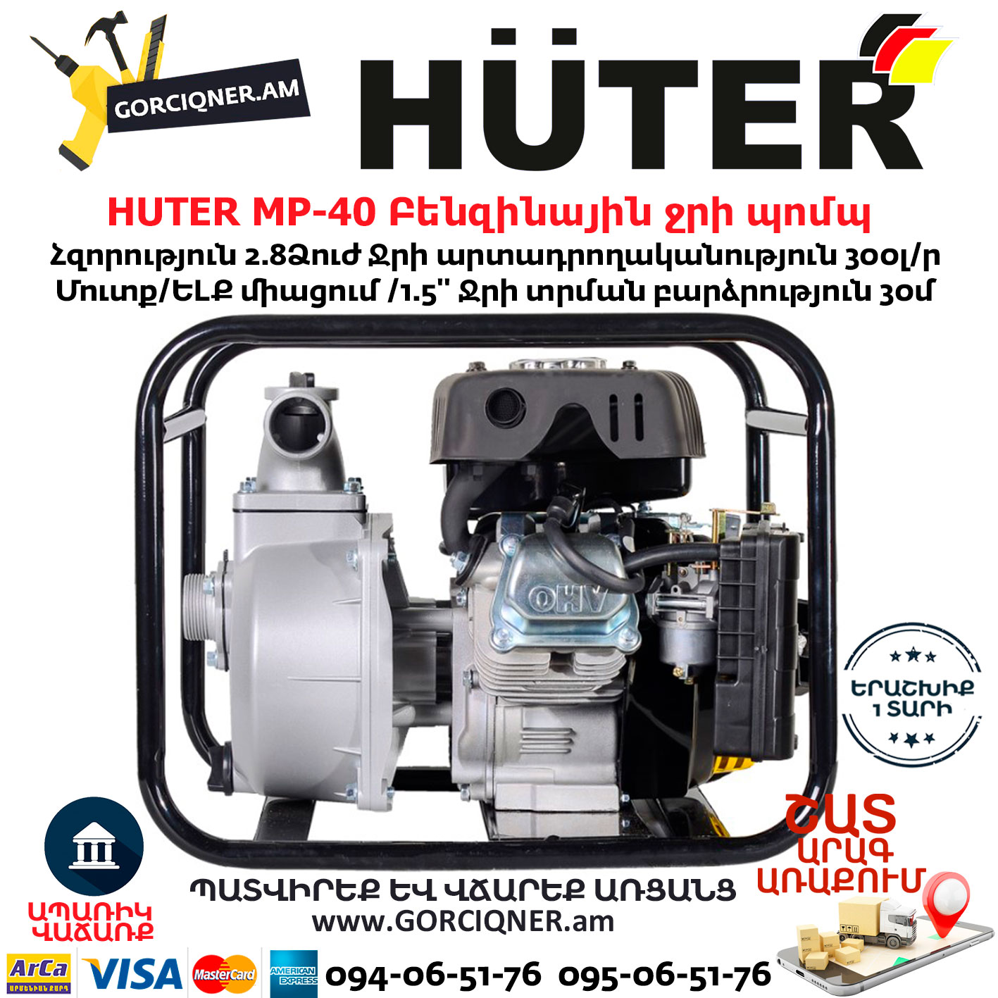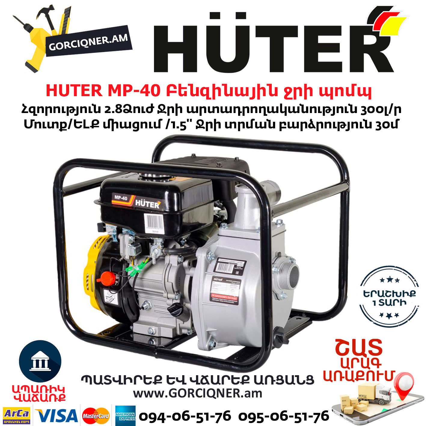 HUTER MP-40 Բենզինային ջրի պոմպ