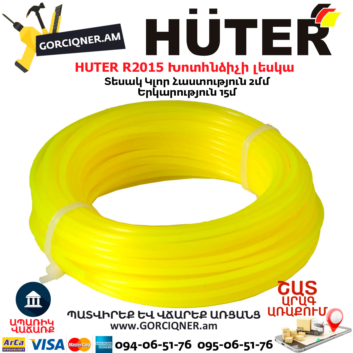 HUTER R2015 Խոտհնձիչի լեսկա 2մմ/15մ 71/1/9