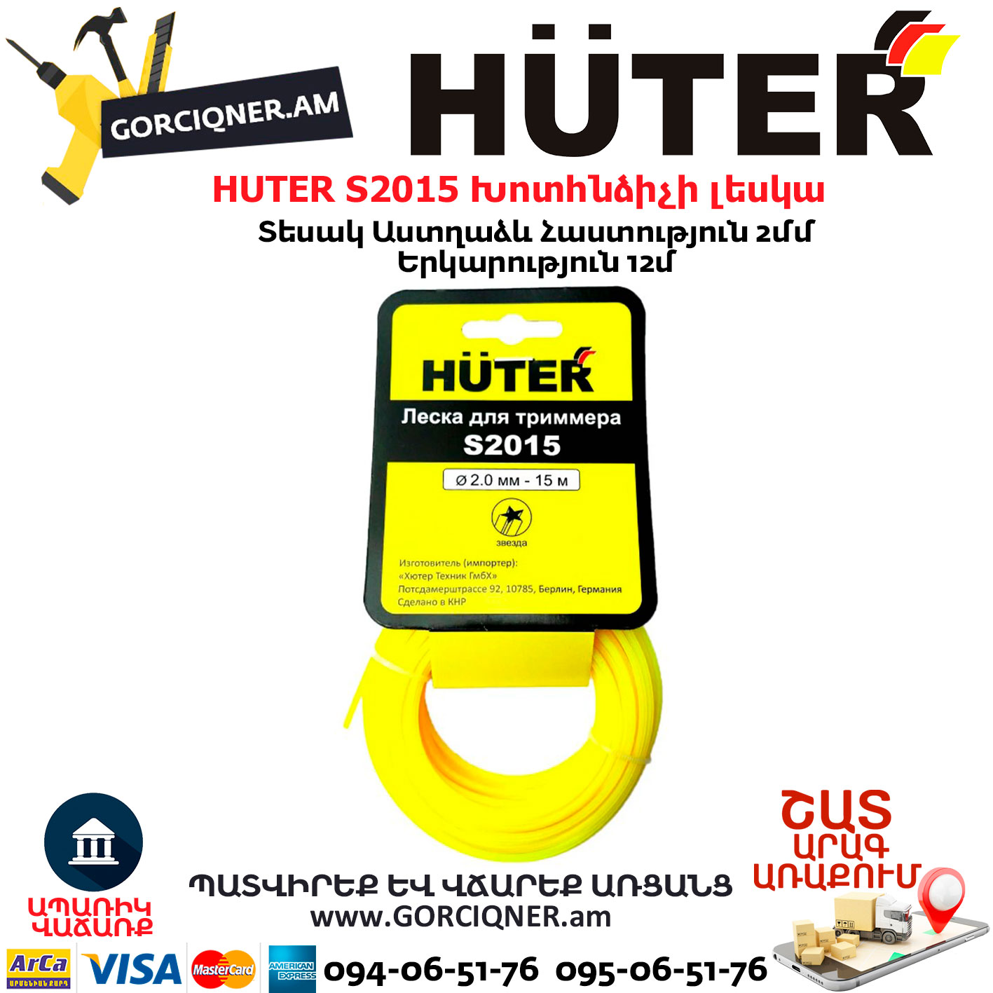 HUTER S2015 Խոտհնձիչի լեսկա 2մմ/12մ
