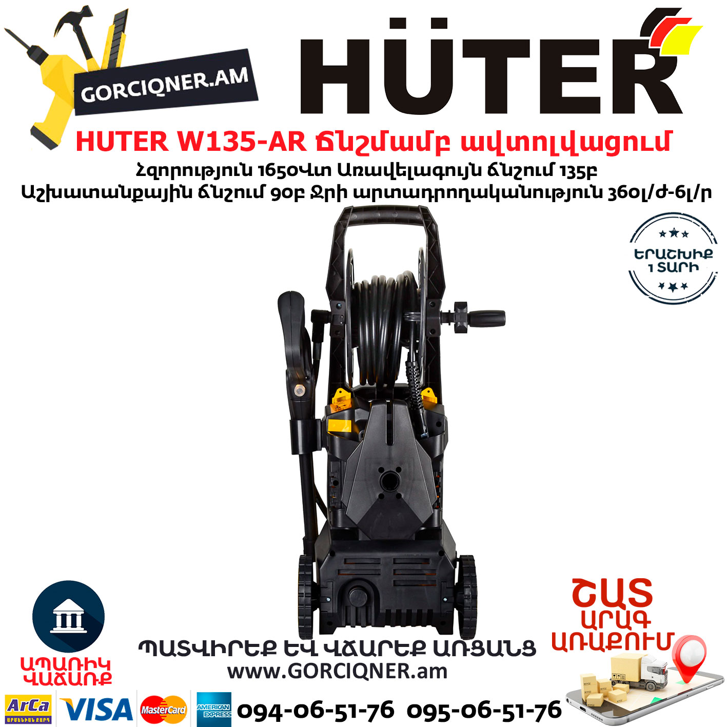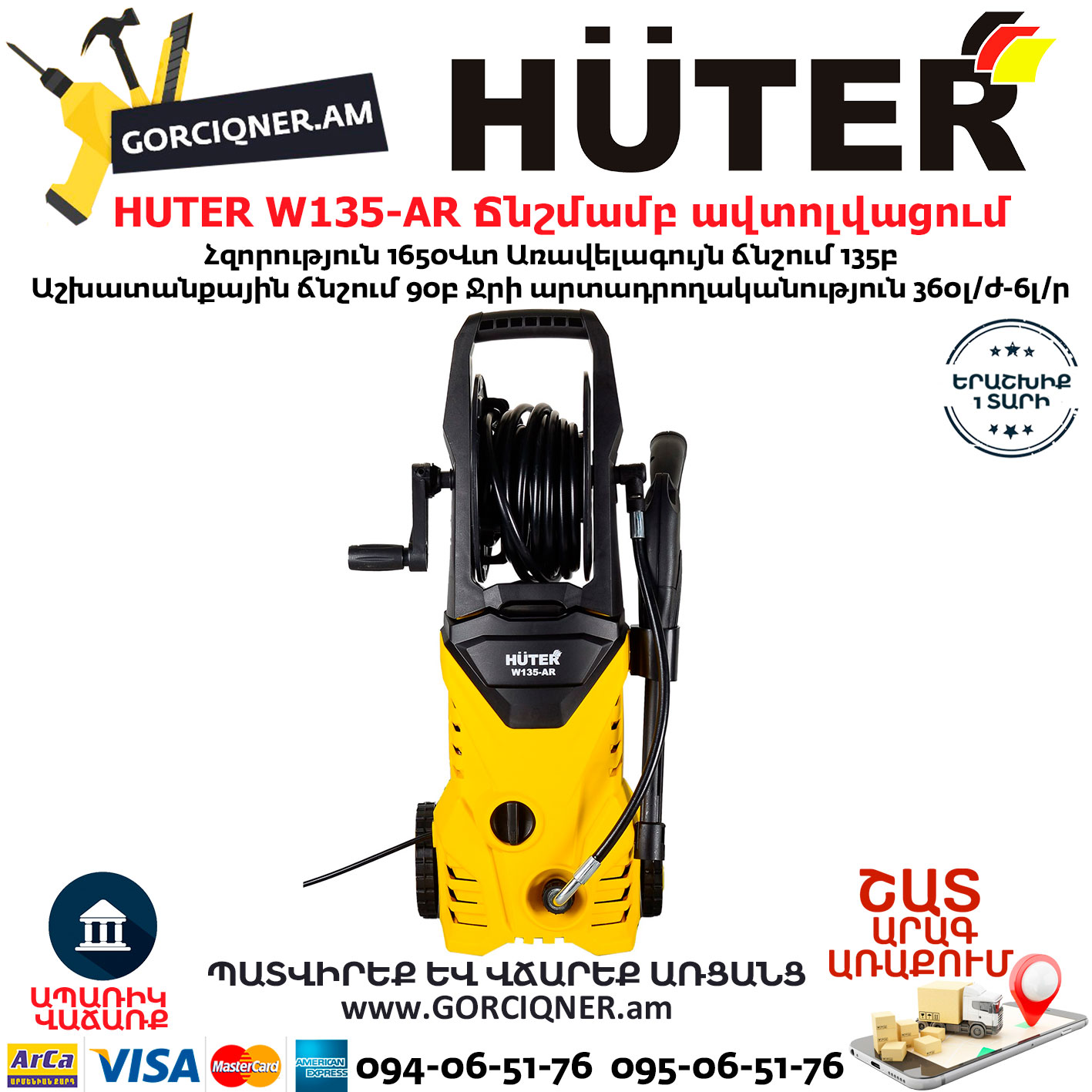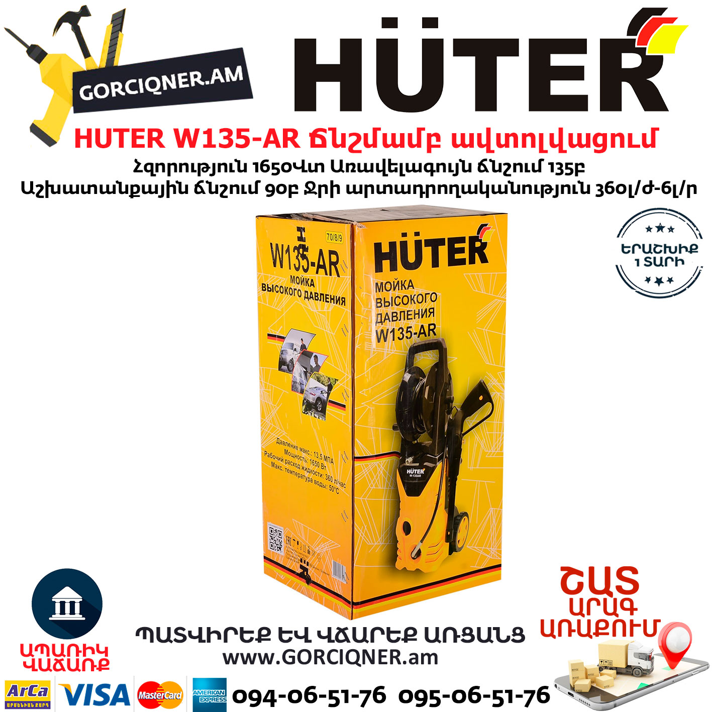 HUTER W135-AR Բարձր ճնշմամբ ավտոլվացում 135բ/1650վտ 70/8/9