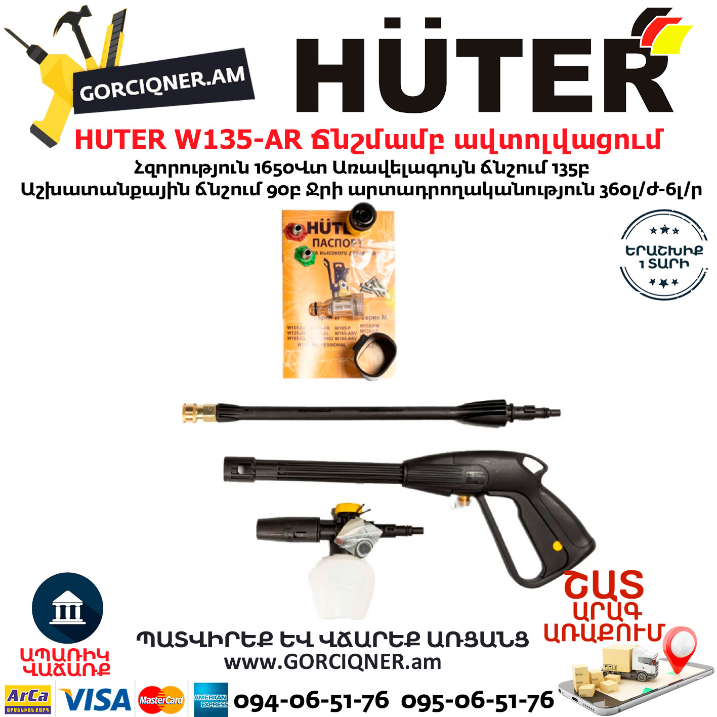 HUTER W135-AR Բարձր ճնշմամբ ավտոլվացում