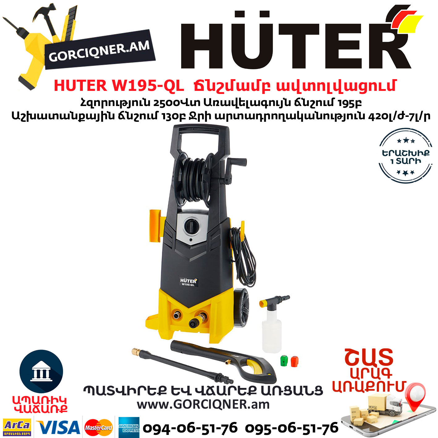 HUTER W195-QL Բարձր ճնշմամբ ավտոլվացում