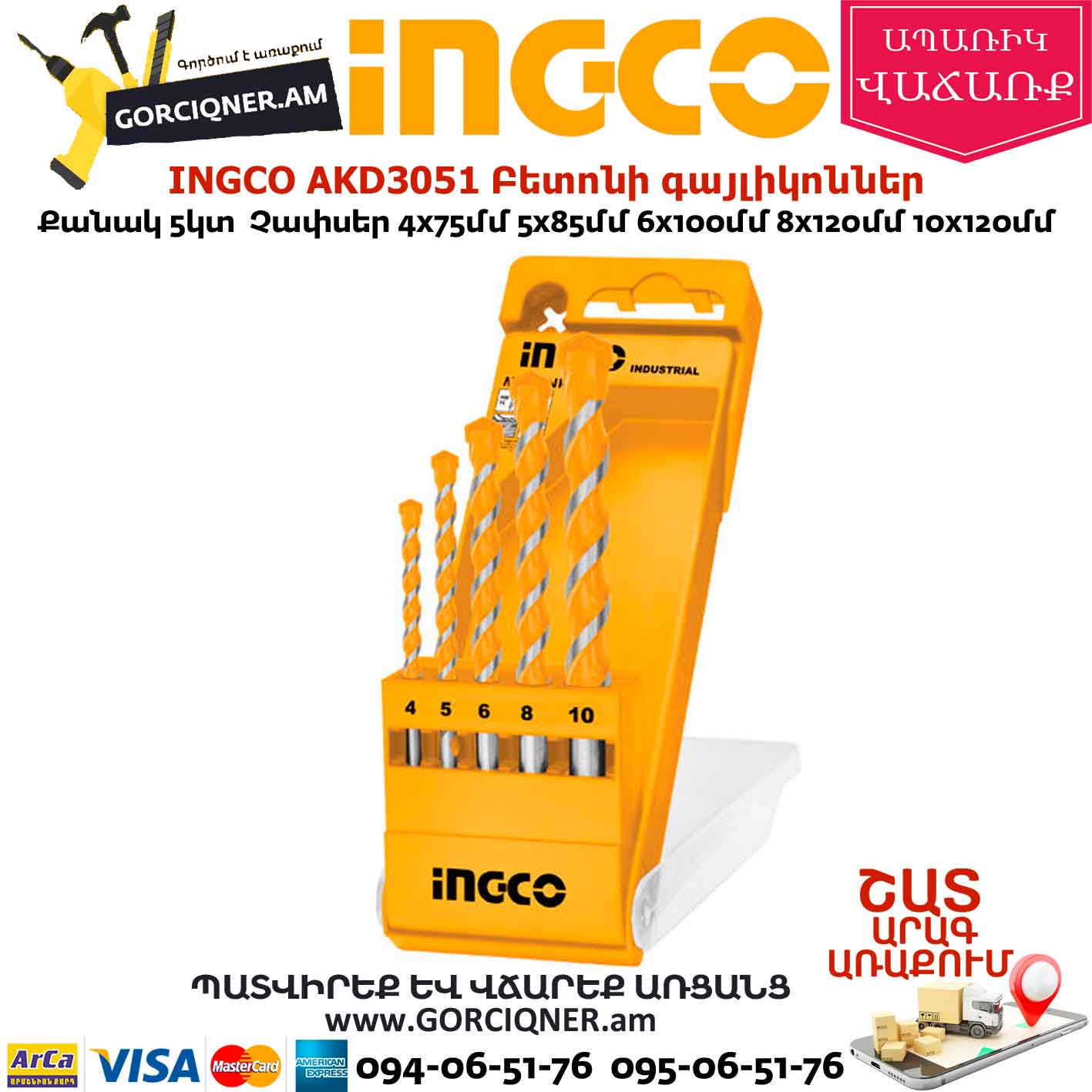 INGCO AKD3051 Բետոնի գայլիկոնների հավաքածու