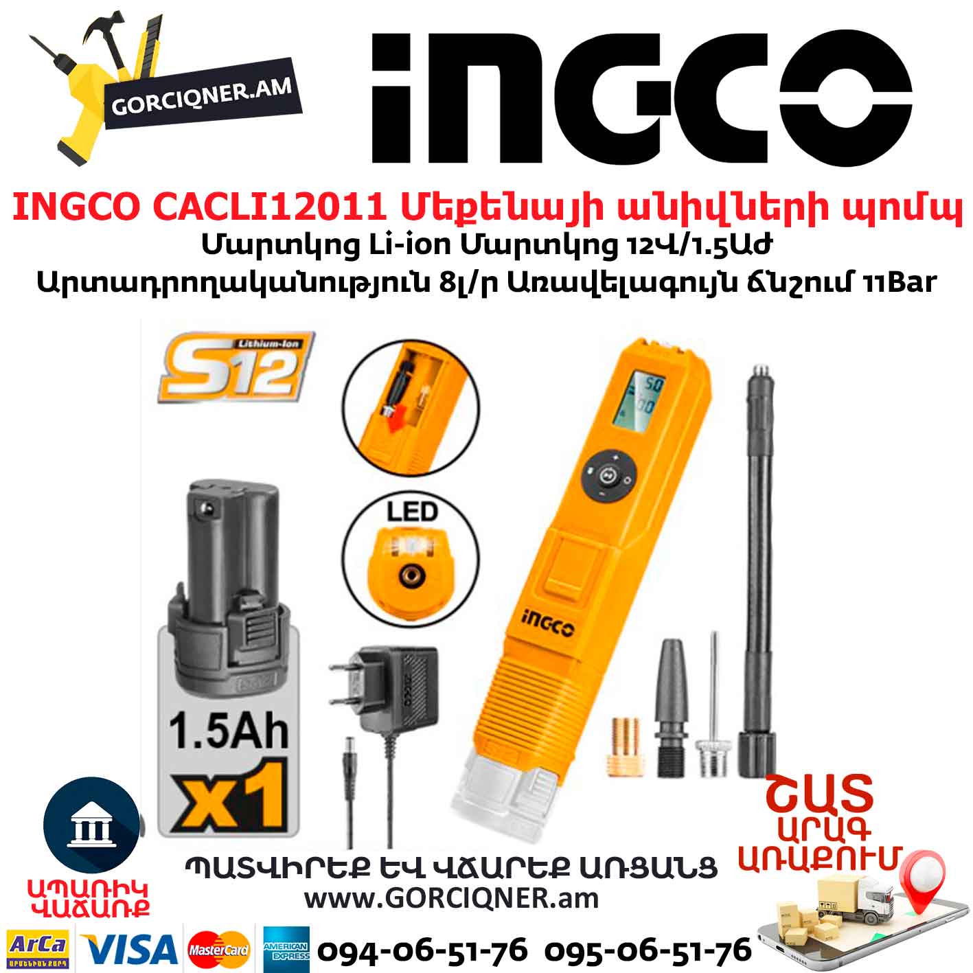 INGCO CACLI12011 Մեքենայի անիվների պոմպ
