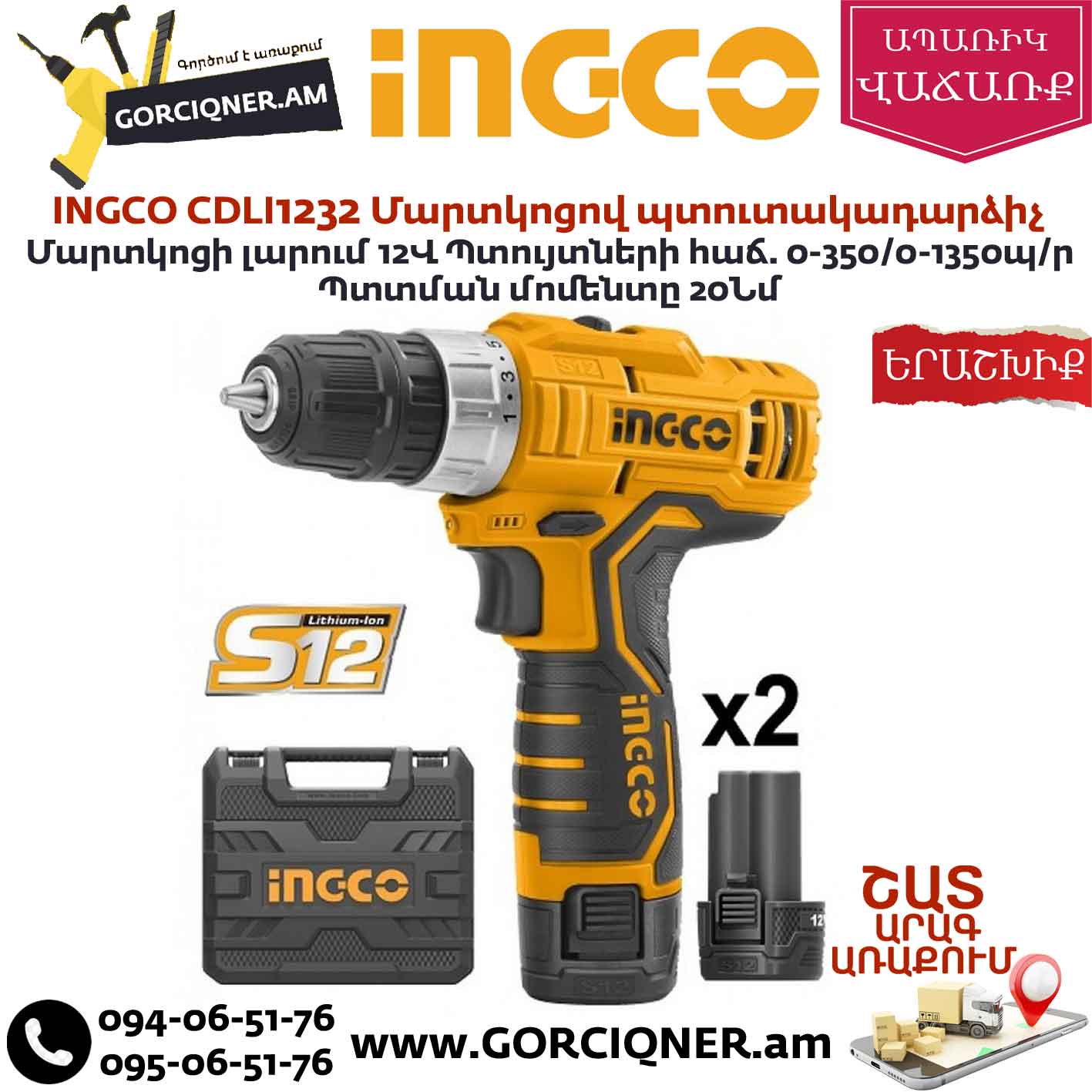 INGCO CDLI1232 Պտուտակադարձիչ 12Վ