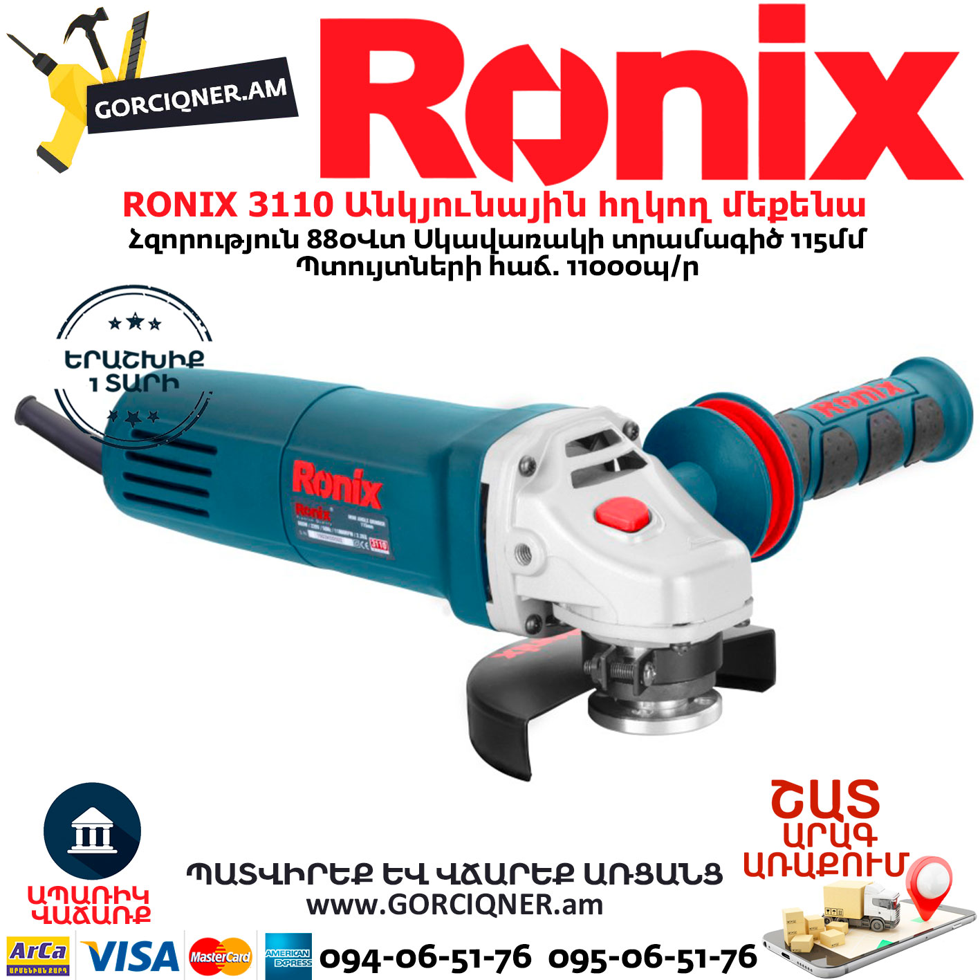 RONIX 3110 Անկյունային հղկող մեքենա
