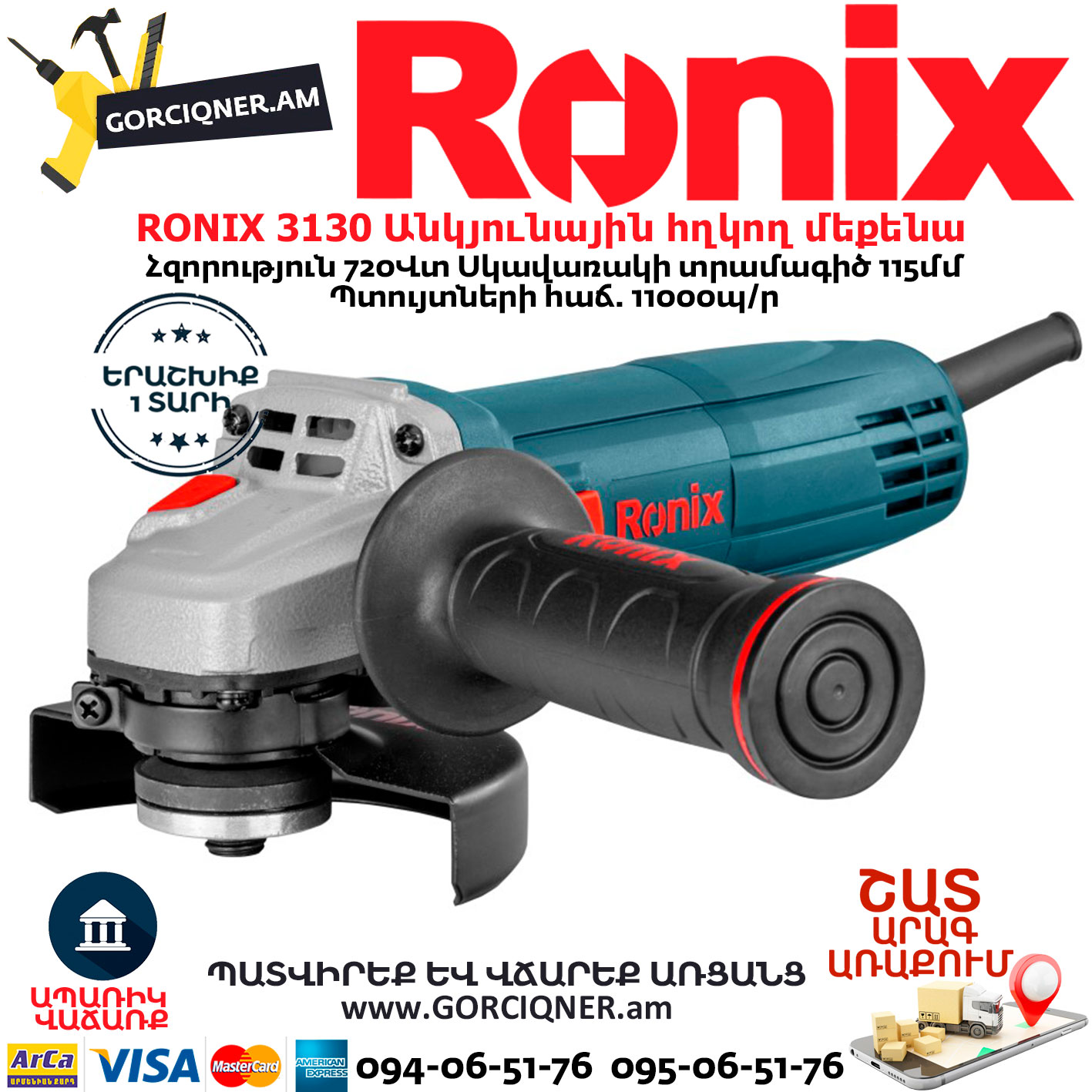 RONIX 3130 Անկյունային հղկող մեքենա