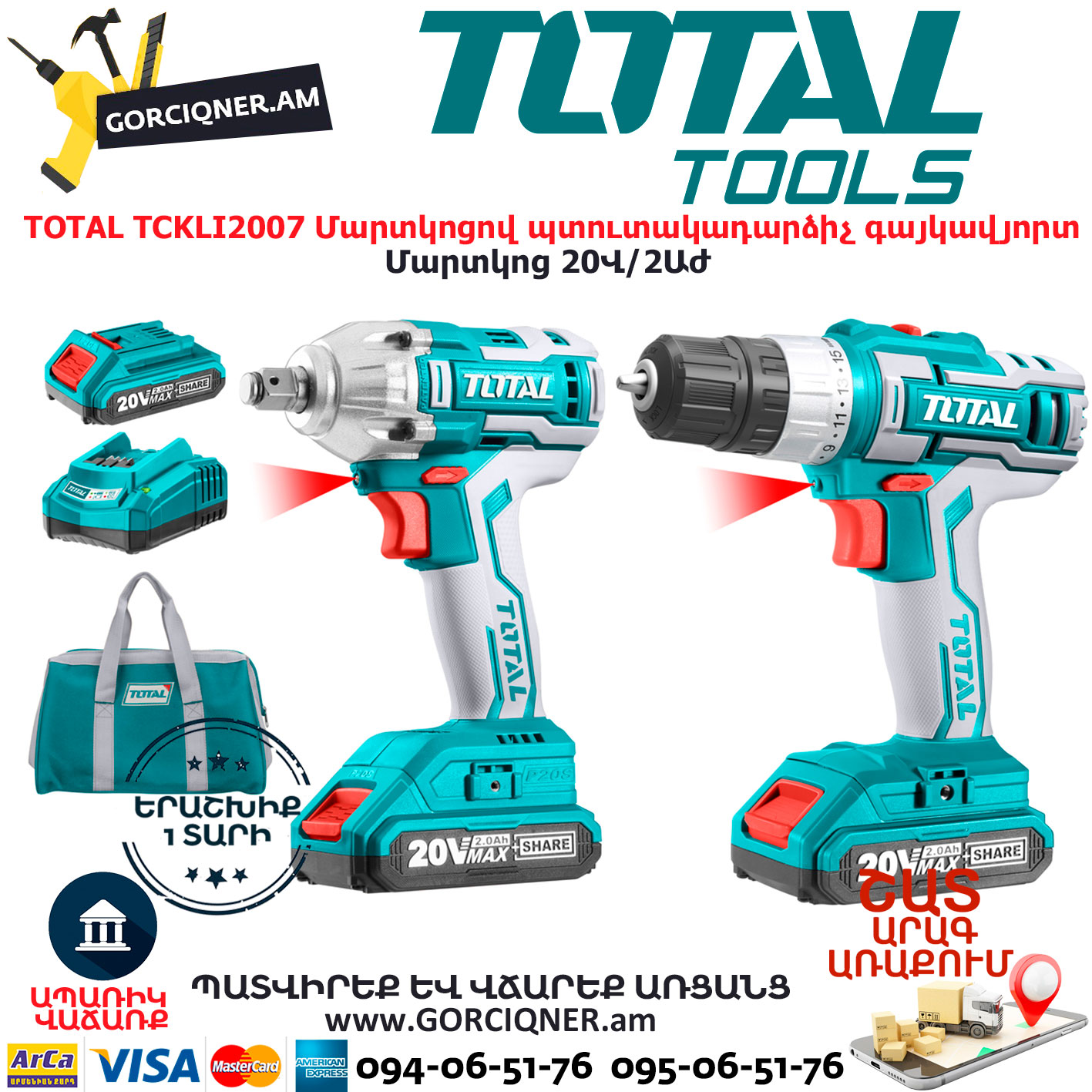 ԱՐՏԱԴՐՈՂ TOTAL(ՉԻՆԱՍՏԱՆ) TOTAL TCKLI2007 Մարտկոցով պտուտակադարձիչ գայկավյորտ