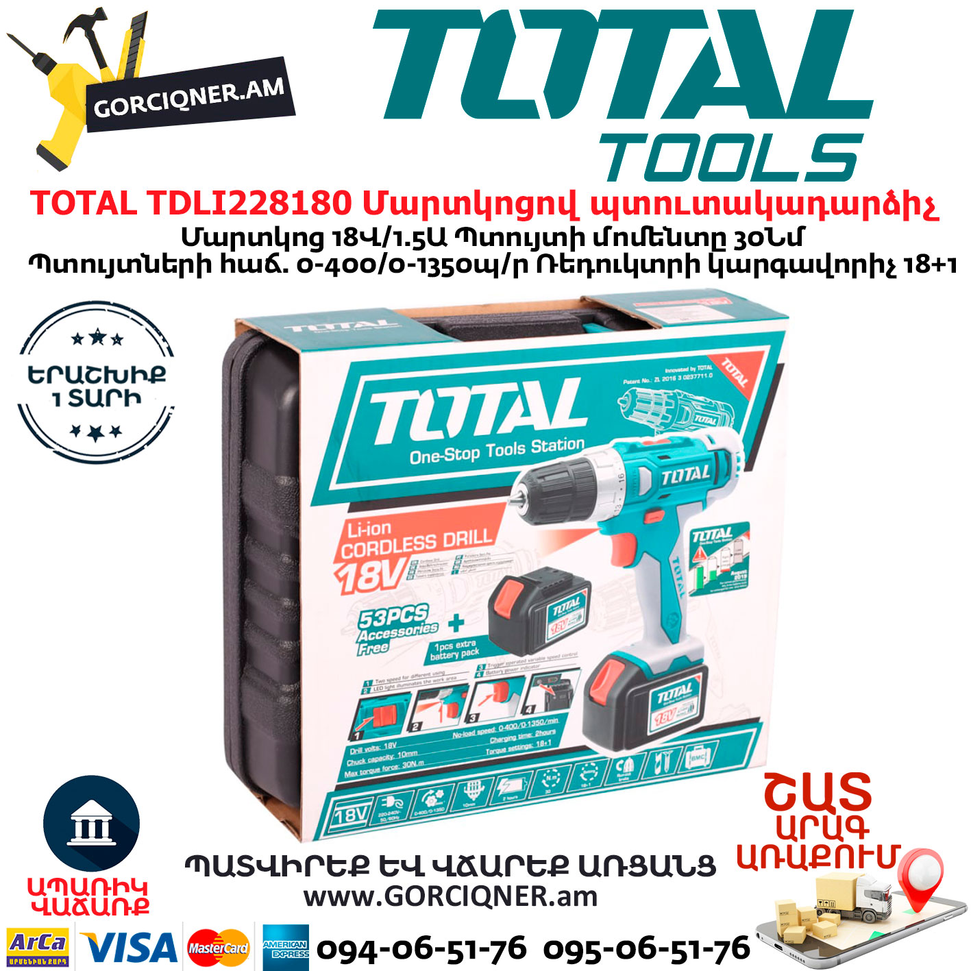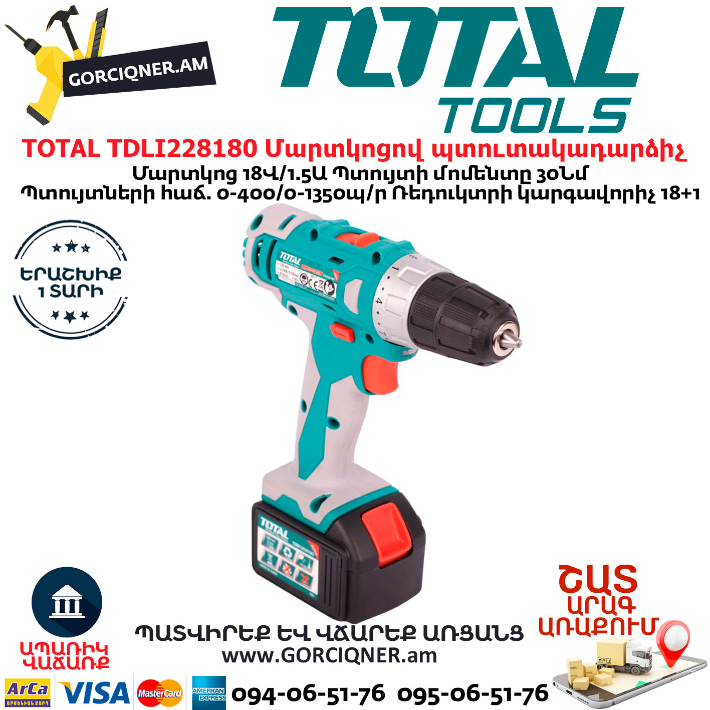 TOTAL TDLI228180 Մարտկոցով պտուտակադարձիչ
