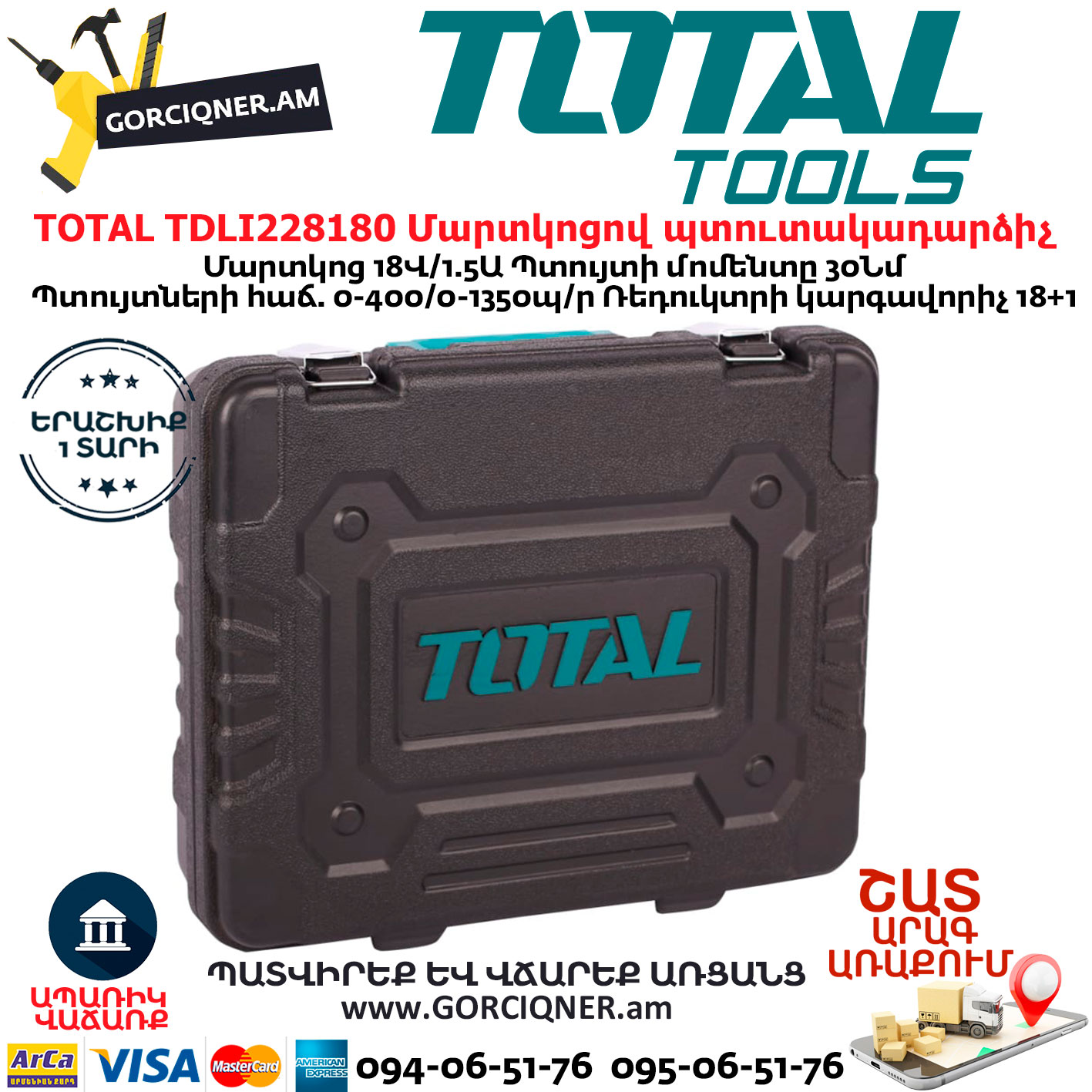 TOTAL TDLI228180 Մարտկոցով պտուտակադարձիչ 18Վ
