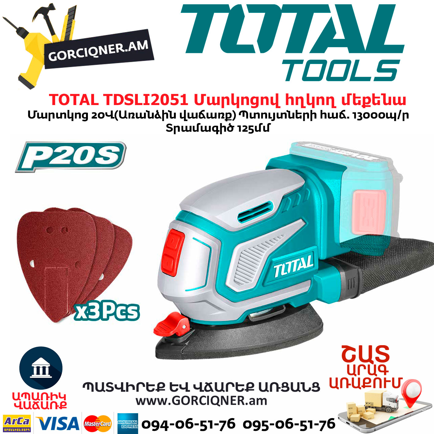 TOTAL TDSLI2051 Մարկոցով հղկող մեքենա 20Վ