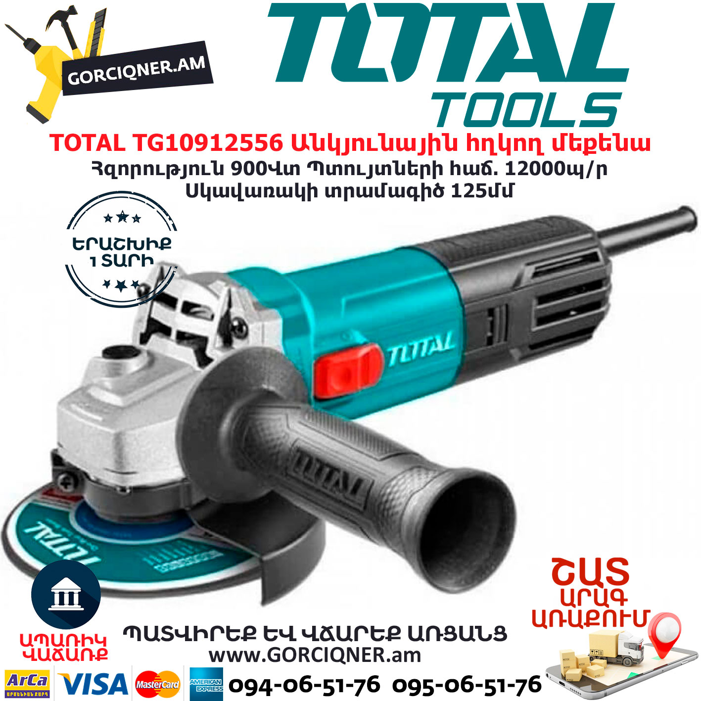 TOTAL TG10912556 Անկյունային հղկող մեքենաTOTAL TG10912556 Անկյունային հղկող մեքենա TOTAL ARMENIA ԷԼԵԿՏՐԱԿԱՆ ԳՈՐԾԻՔՆԵՐ