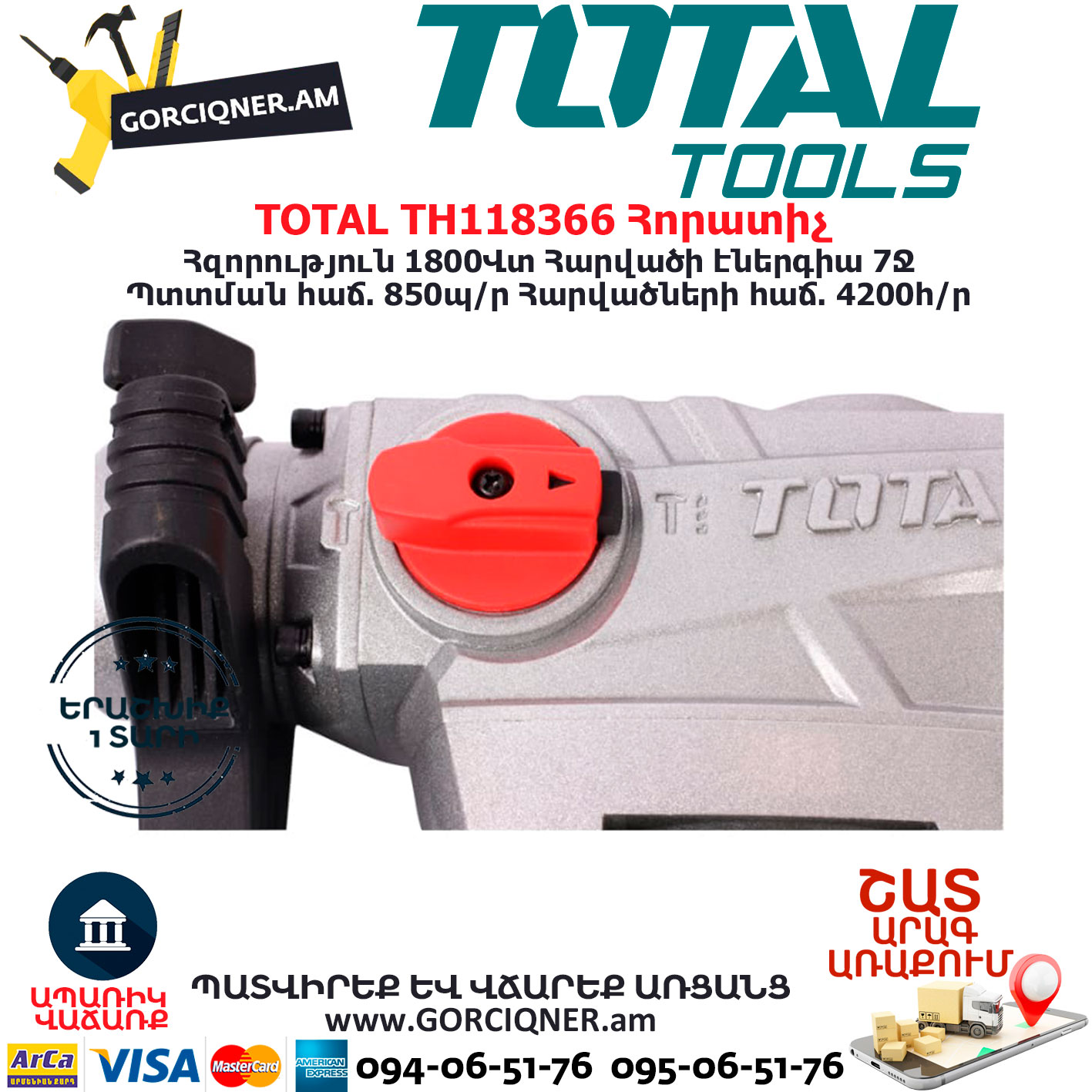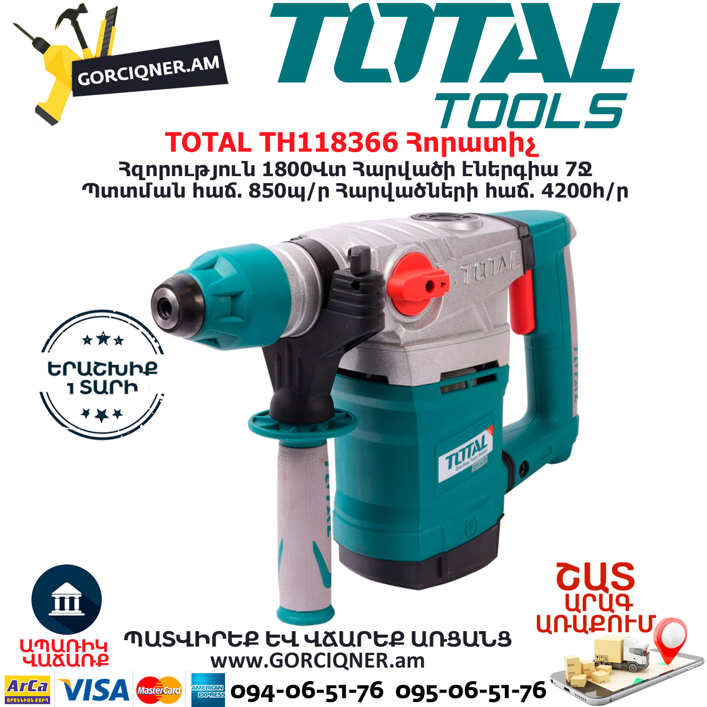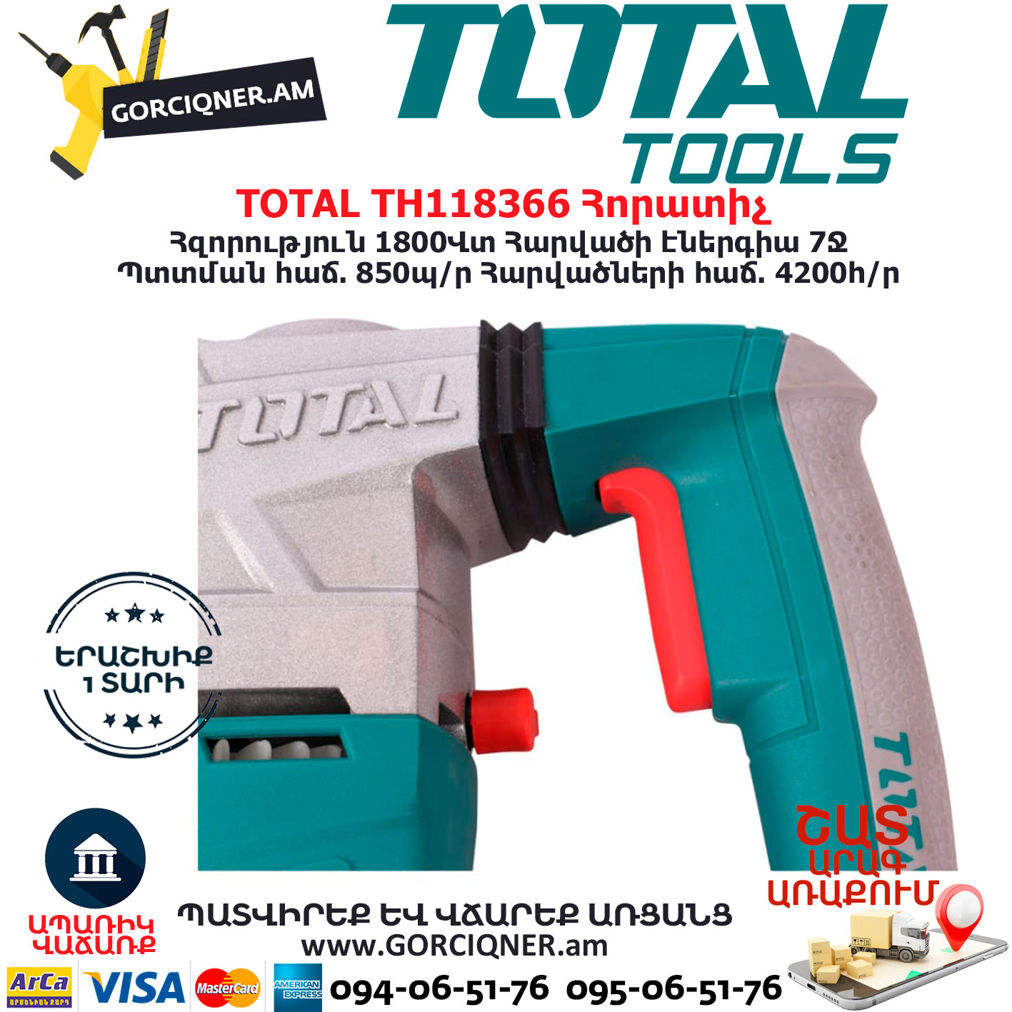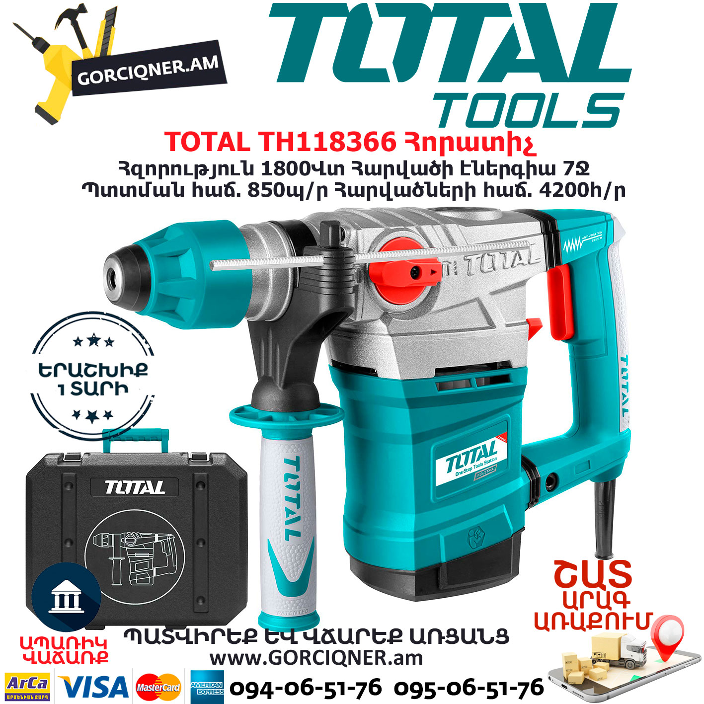 TOTAL TH118366 Հորատիչ Էլեկտրական գործիքներ