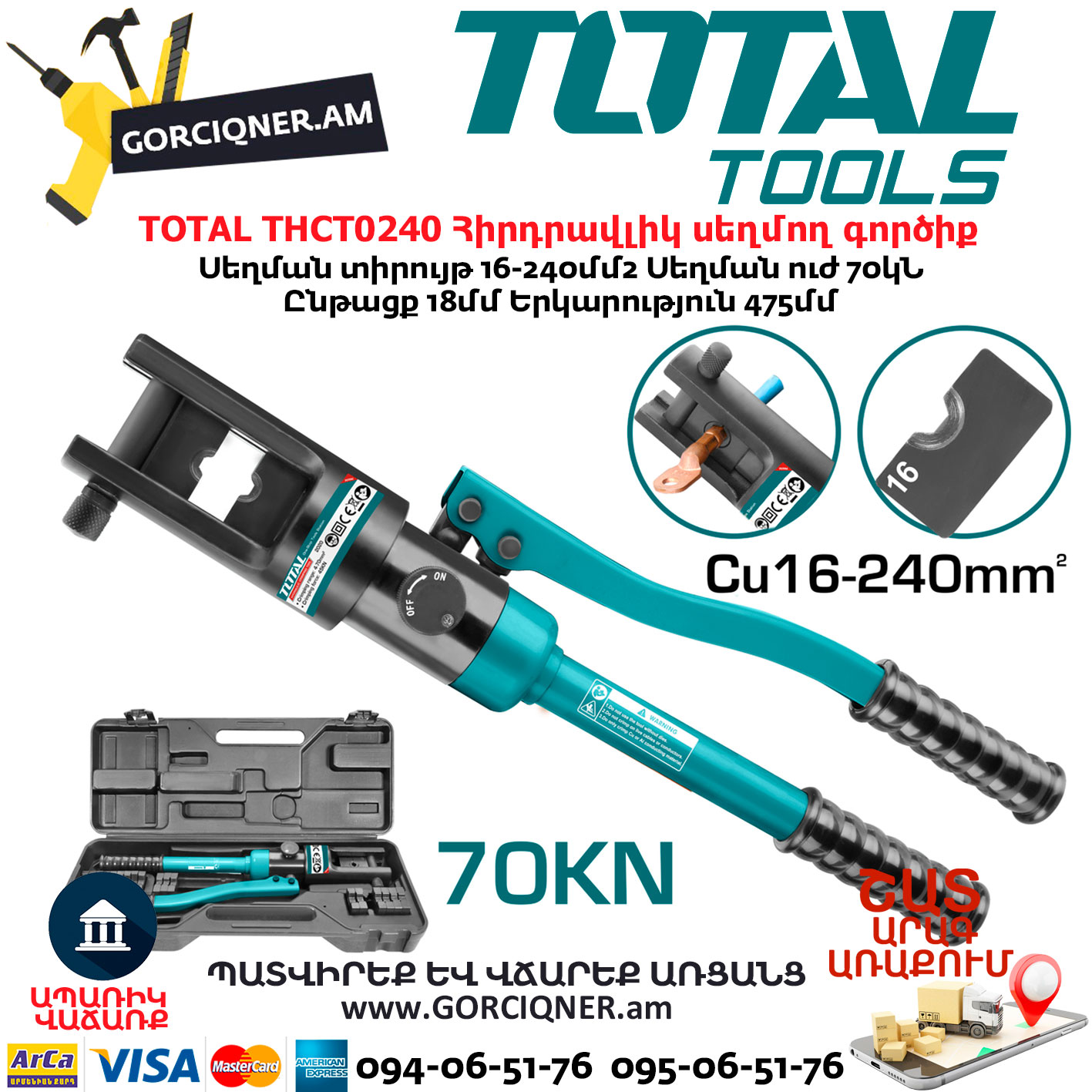 Սեղման տիրույթ 16-240մմ2