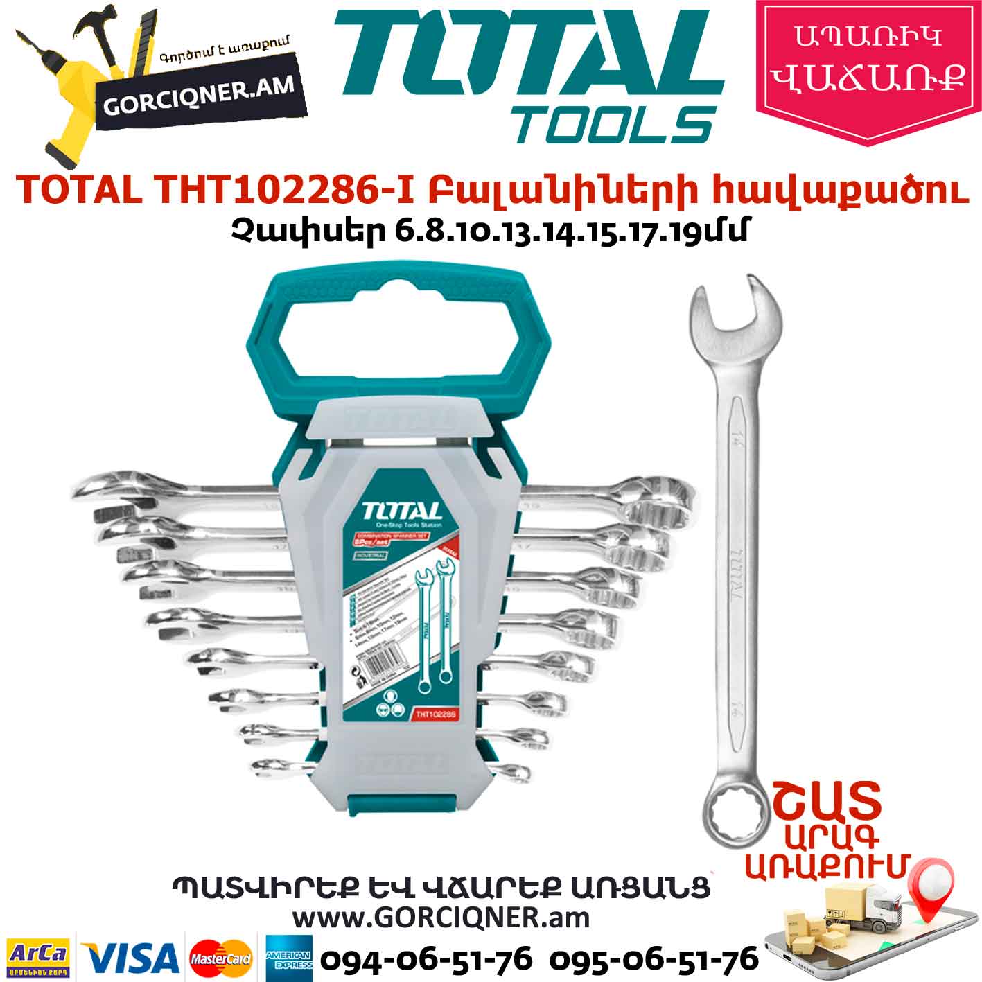 Չափսեր 6.8.10.13.14.15.17.19մմ