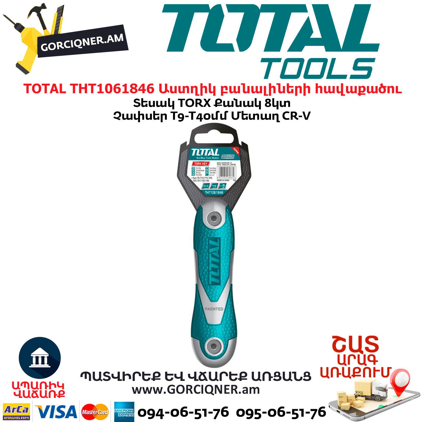 TOTAL THT1061846 Աստղիկ բանալիների հավաքածու TORX 8կտ