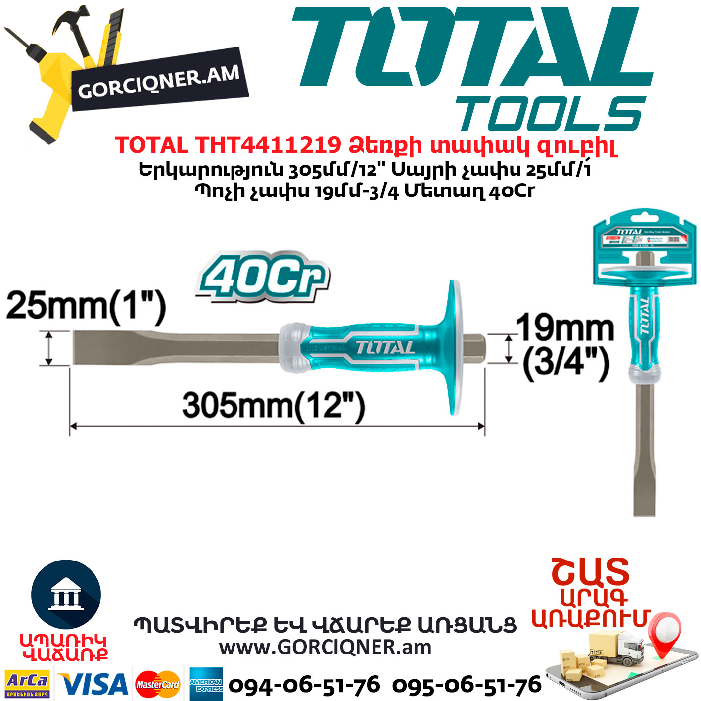 Սայրի չափս 25մմ/1՛՛