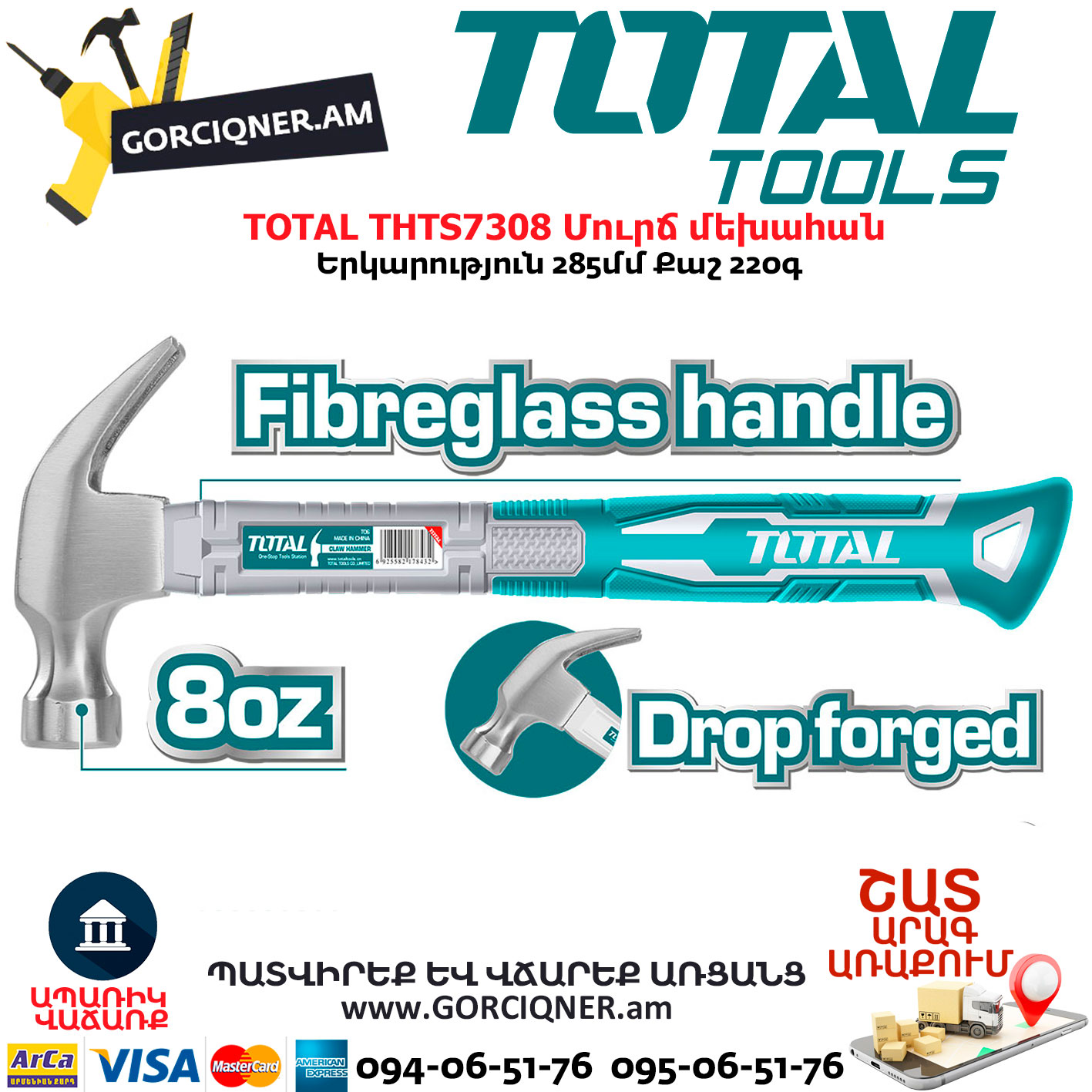 TOTAL THTS7308 Մուրճ մեխահան 220գ
