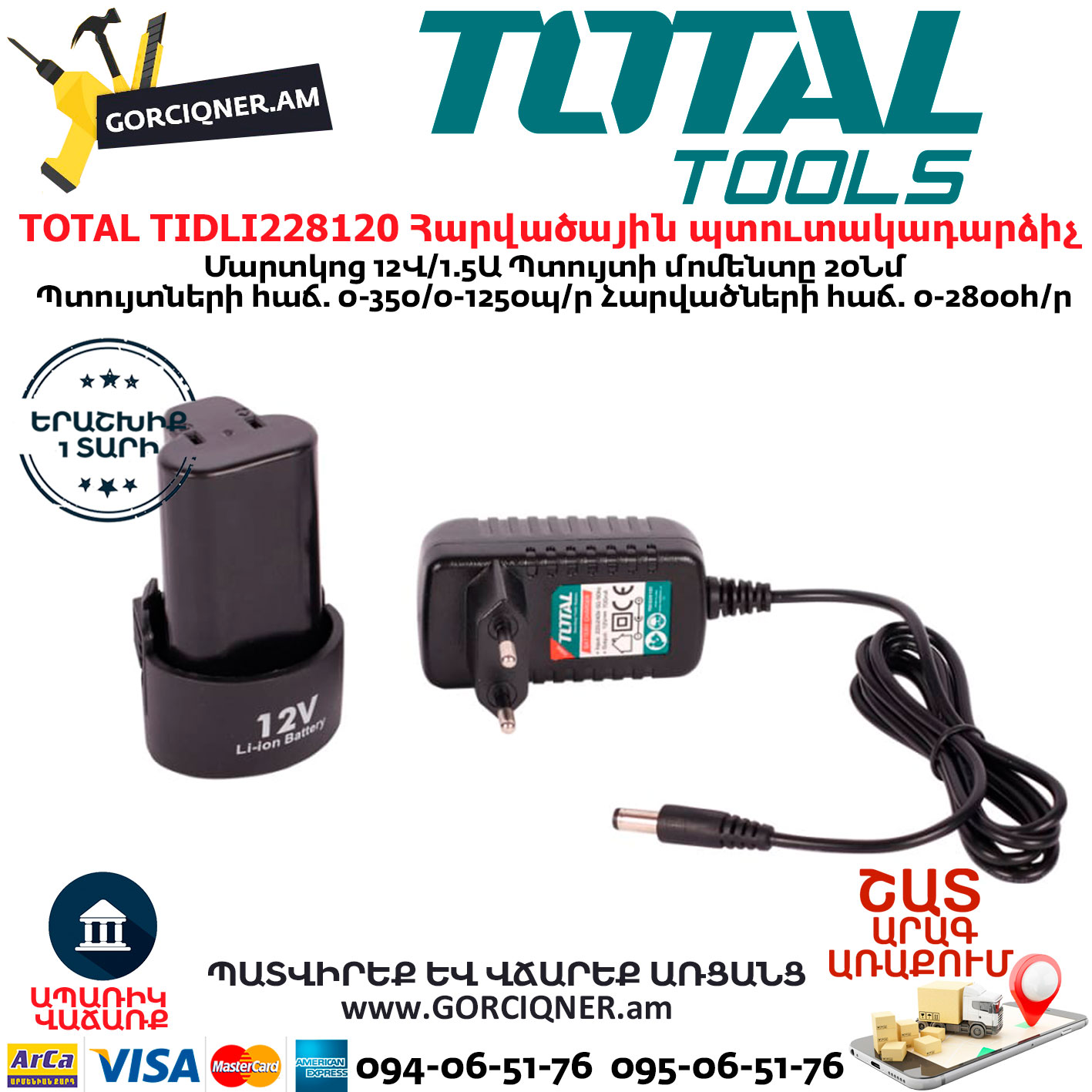 Մարտկոց 12Վ/1.5Ա Li-Ion x2