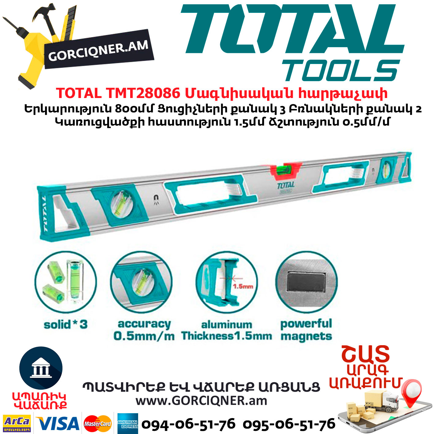 TOTAL TMT28086 Մագնիսական հարթաչափ ինդուստրիալ 800մմ