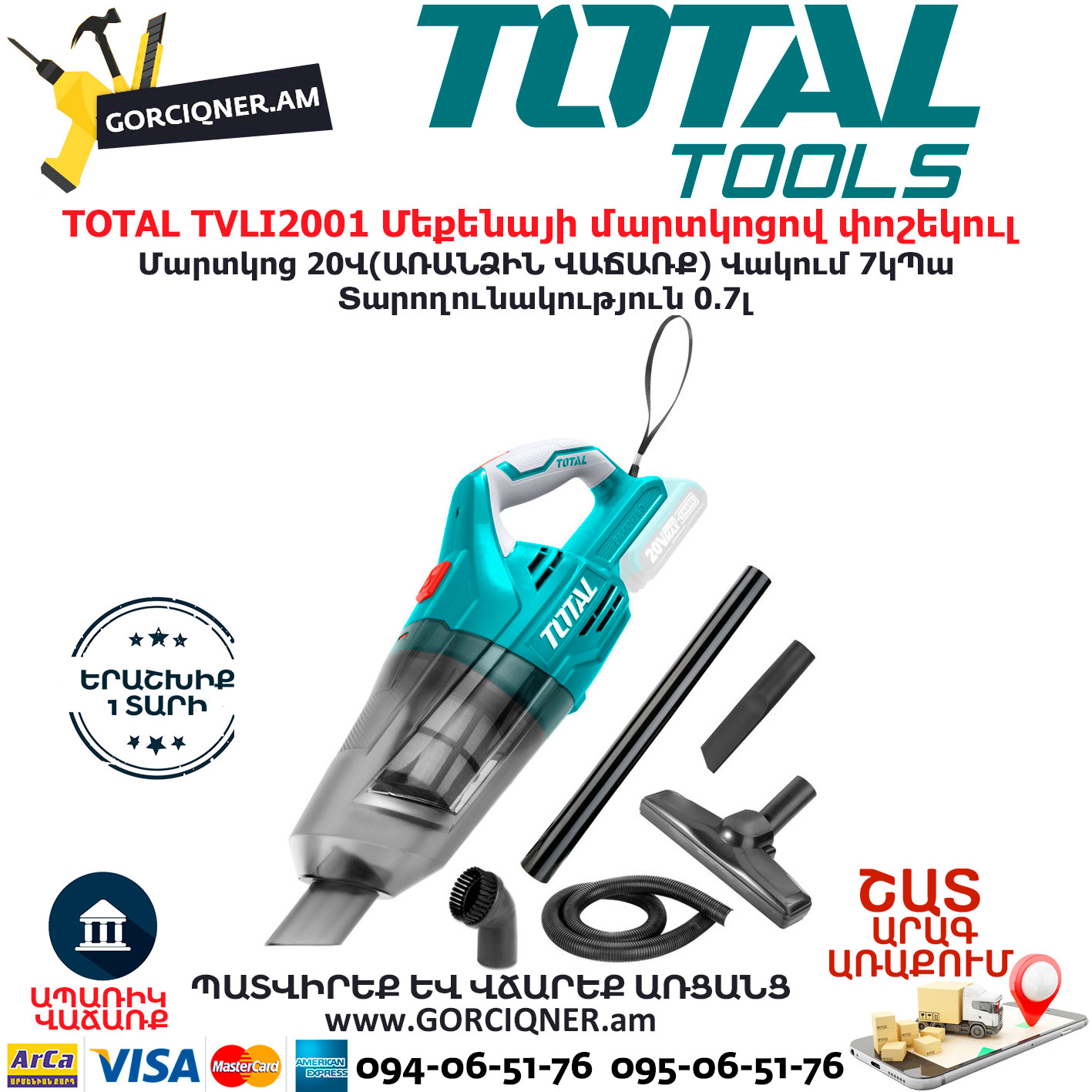 TOTAL TVLI2001 Մեքենայի մարտկոցով փոշեկուլ TOTAL TVLI2001 Մեքենայի մարտկոցով փոշեկուլ TOTAL TOOLS ARMENIA TOTAL ԷԼԵԿՏՐԱԿԱՆ ԳՈՐԾԻՔՆԵՐ