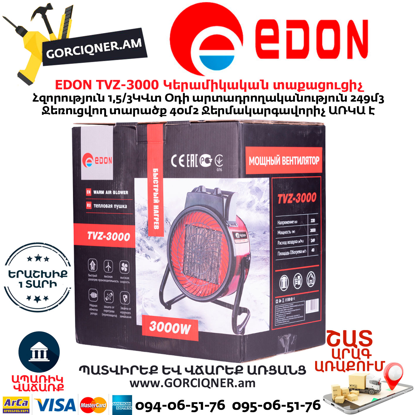 EDON TVZ-3000 Կերամիկական Էլեկտրական տաքացուցիչ