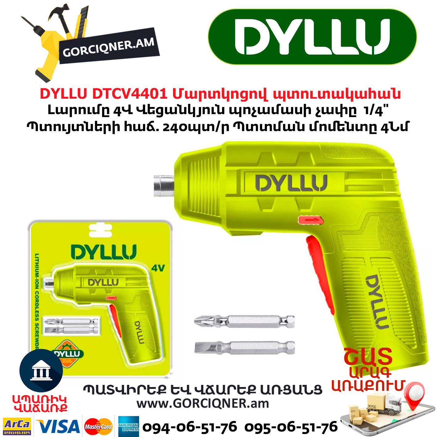 Аккумуляторная отвертка DYLLU DTCV4401 4В/4Нм