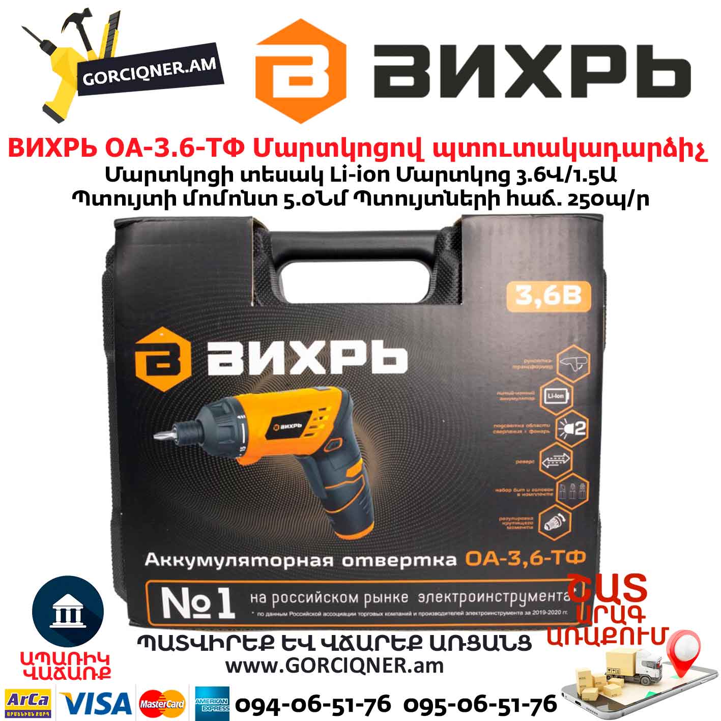Аккумуляторная отвёртка ВИХРЬ ОА-3.6-ТФ 3.6В/5.0Ач 72/14/31