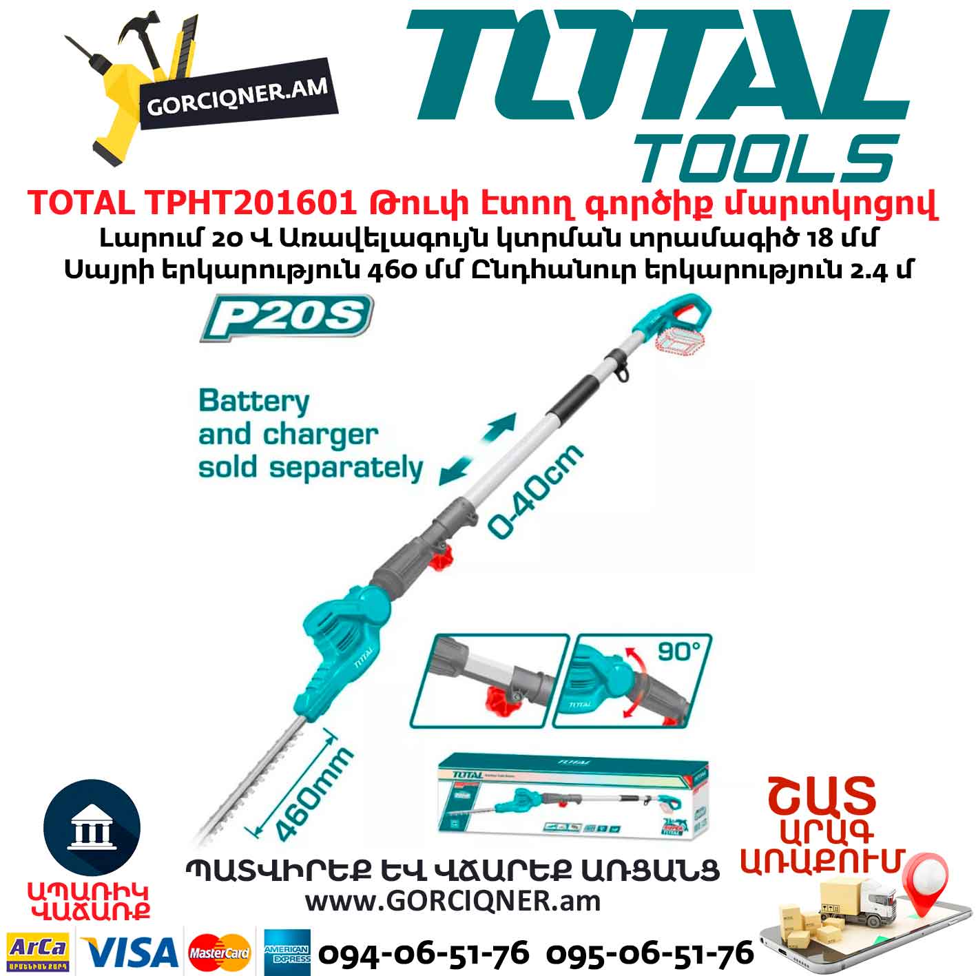 Аккумуляторный телескопический кусторез TOTAL TPHT201601 20В 460мм