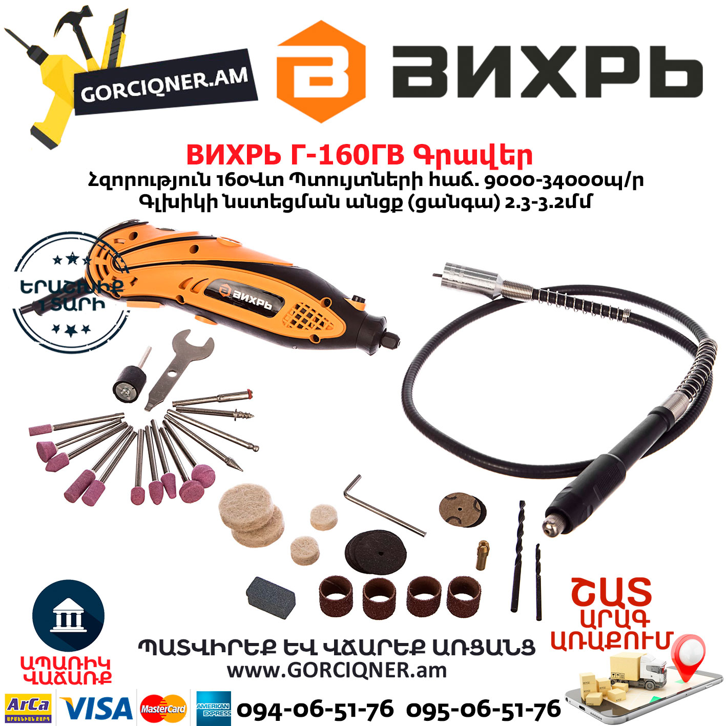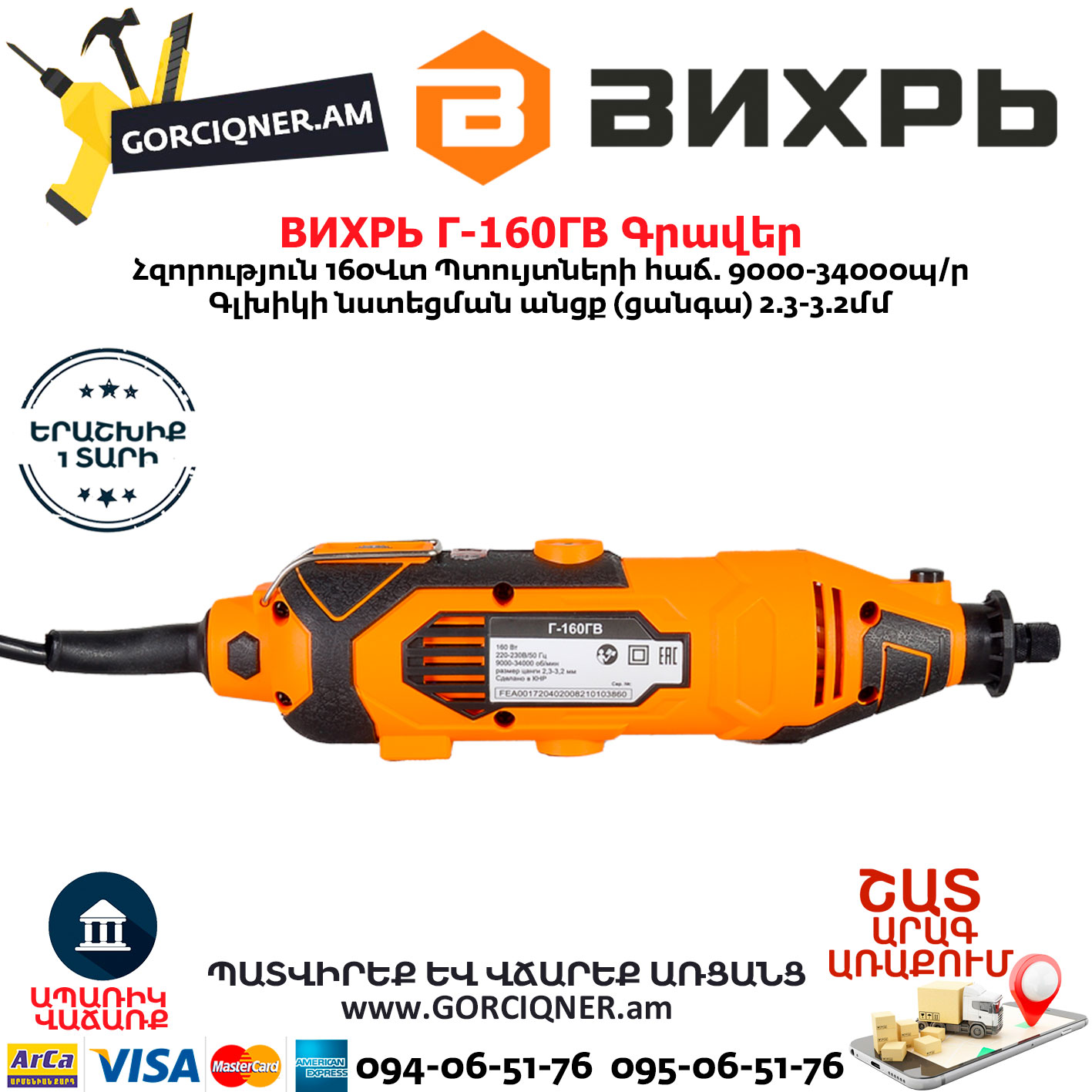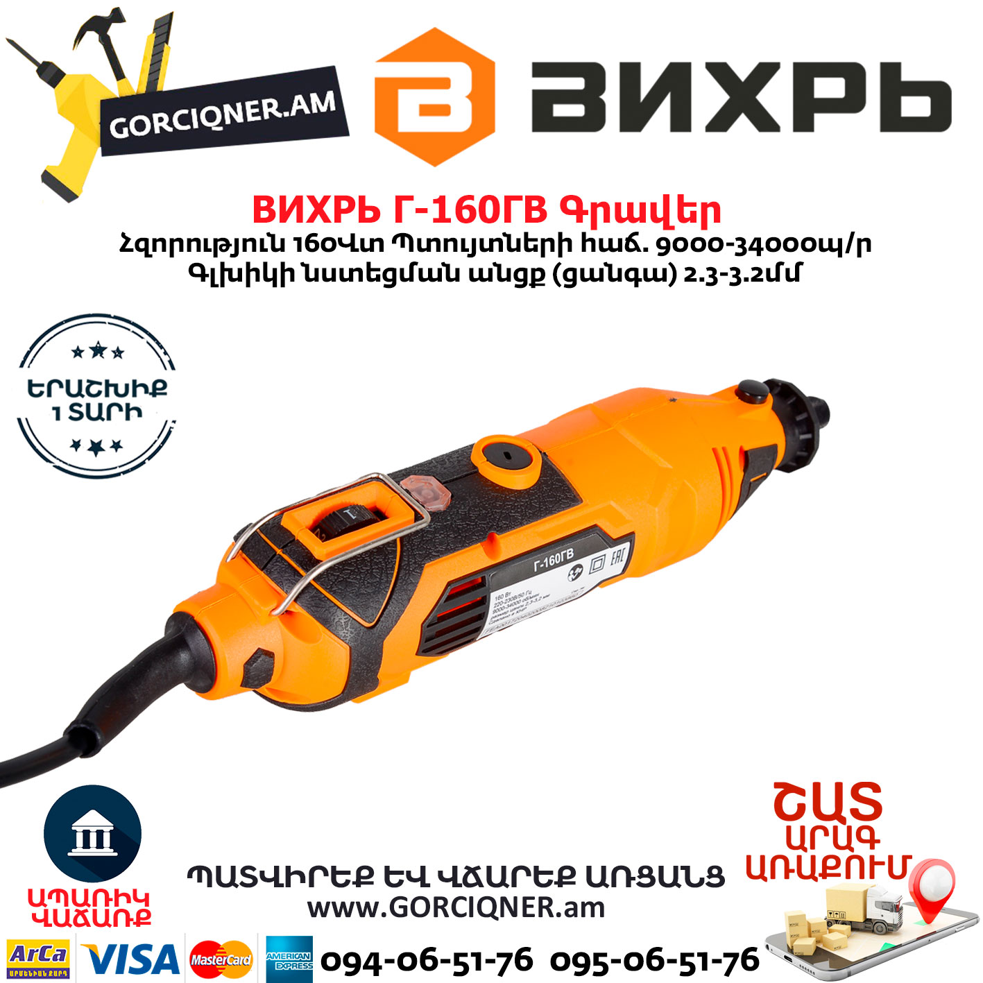 ВИХРЬ Г-160ГВ Электрический гравер 160Вт