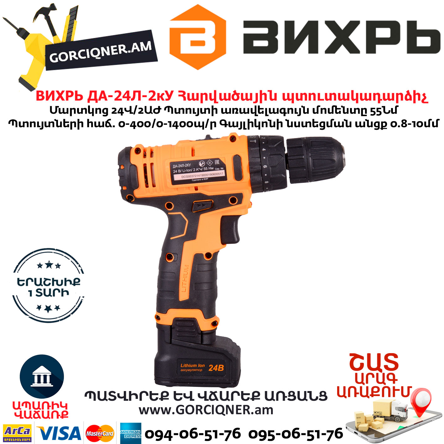 ВИХРЬ ДА-24Л-2кУ Дрель-шуруповерт 24В