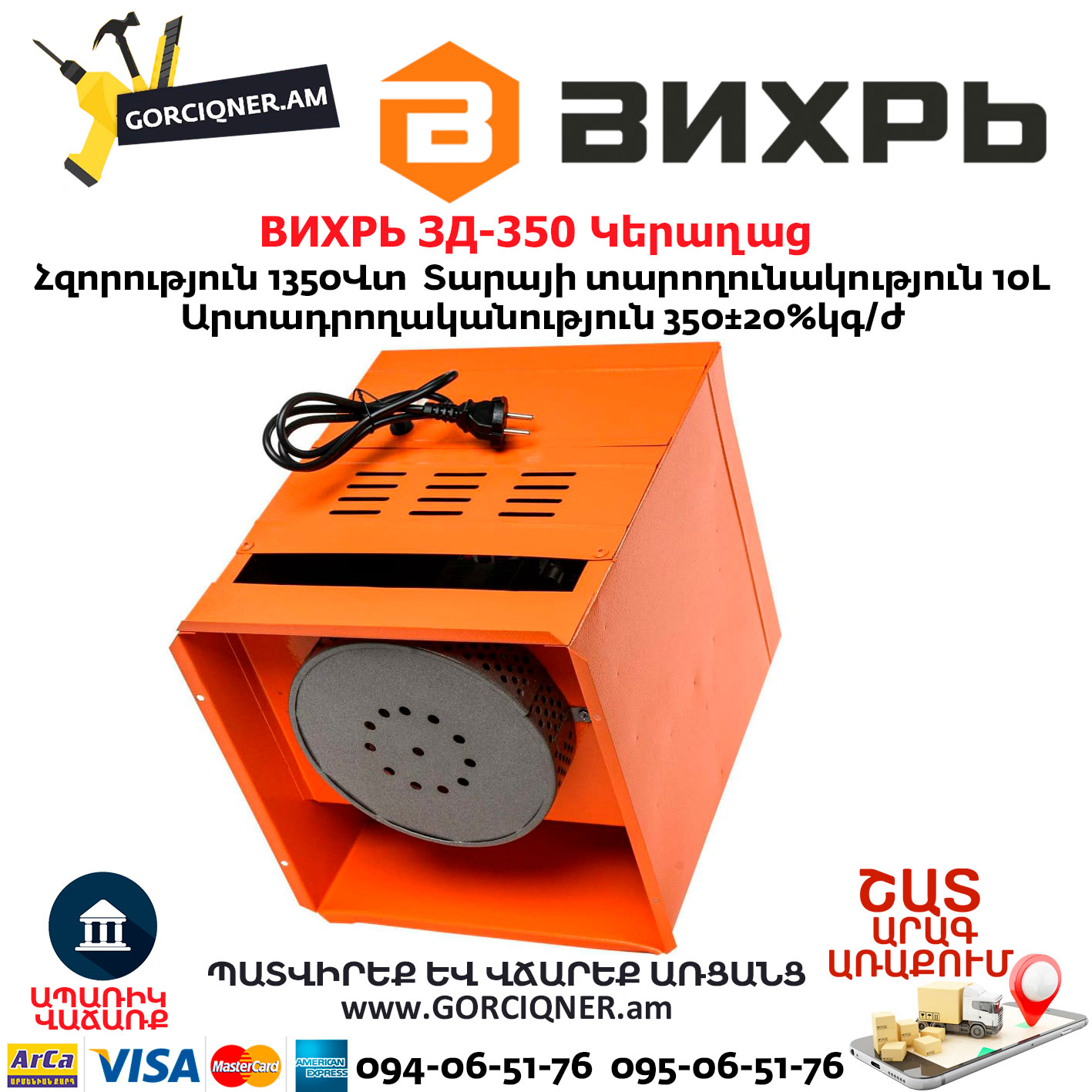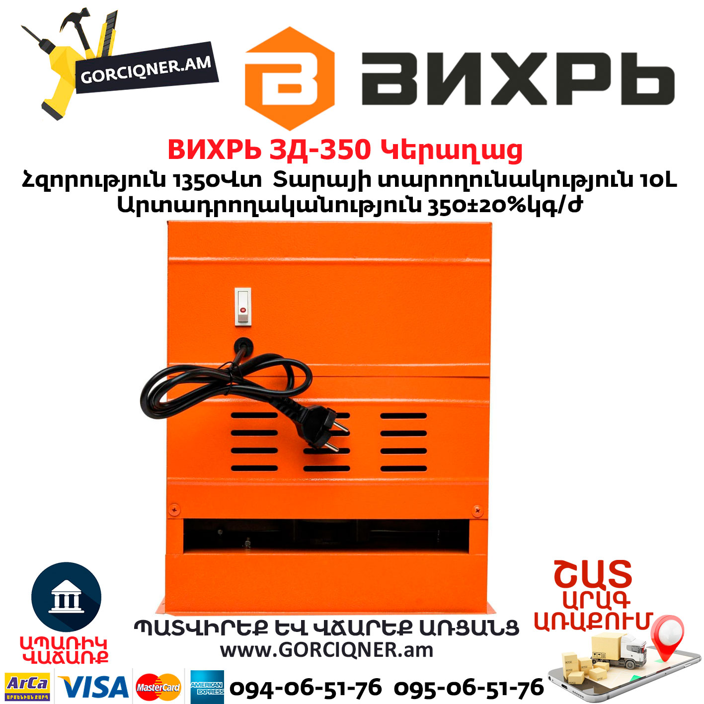 • Небольшие габариты Вихрь ЗД-350 74/2/1;