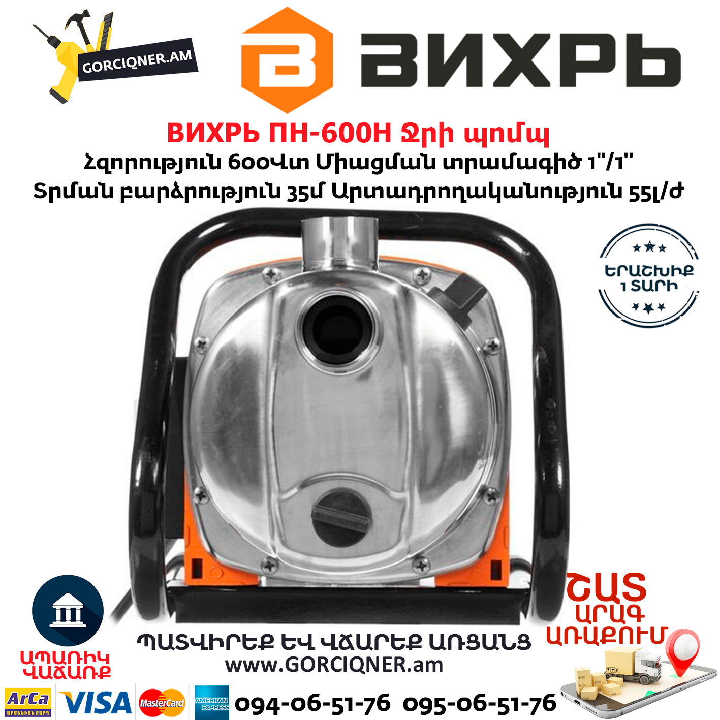 Поверхностный насос Вихрь ПН-600Н предназначен для подачи под давлением чистой воды в дом, для орошения сада и огорода. Вода не должна содержать абразивных или волокнистых, а также химических составных частей, которые могли бы повредить материал деталей насоса. Модель оснащена центробежным насосом, что обуславливает высокий напор при небольшой входной мощности. Мощность насоса составляет 600 Вт, этого хватает для поднятия воды на высоту 45 метров, при этом производительность составит 55 литров в минуту. Корпус насоса выполнен из нержавеющей стали, переходный фланец алюминиевый. В конструкции предусмотрено плоское основание для прочной и надёжной установки.