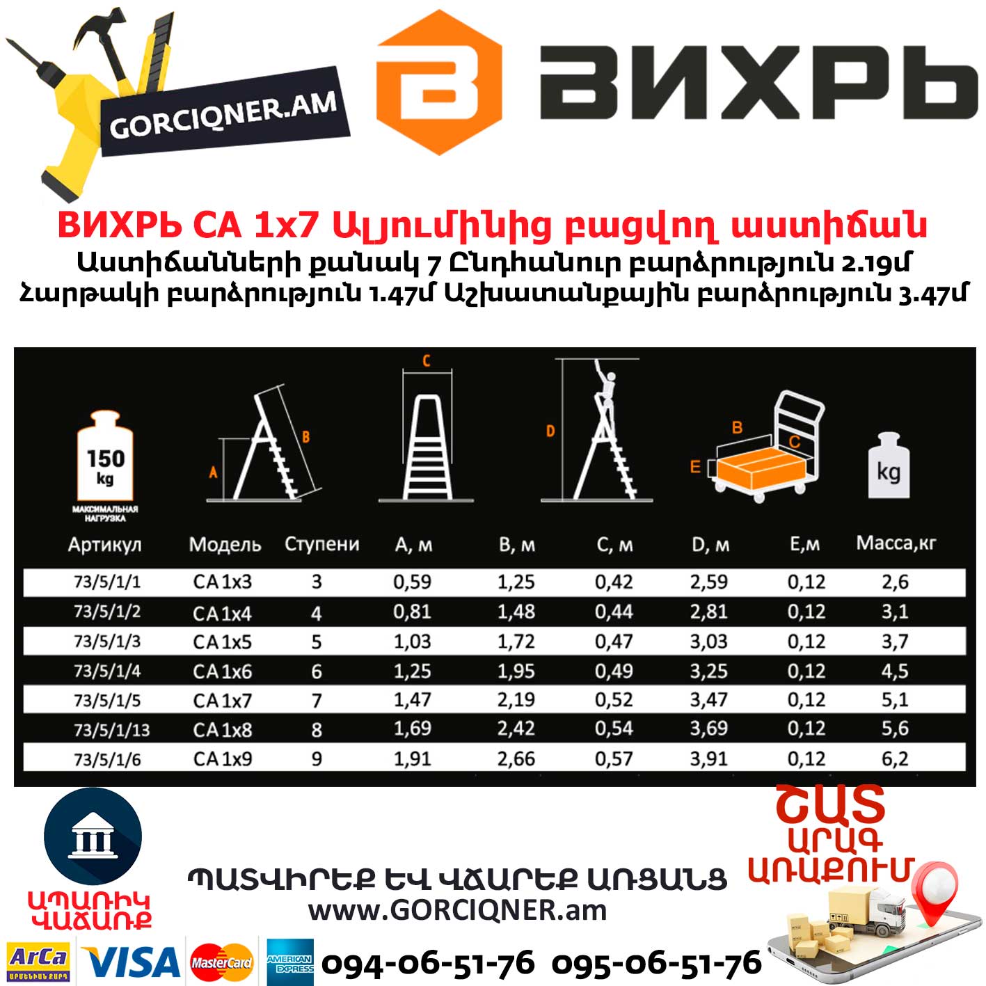 ВИХРЬ СА 1х7 Алюминиевая стремянка 2.19м 73/5/1/5