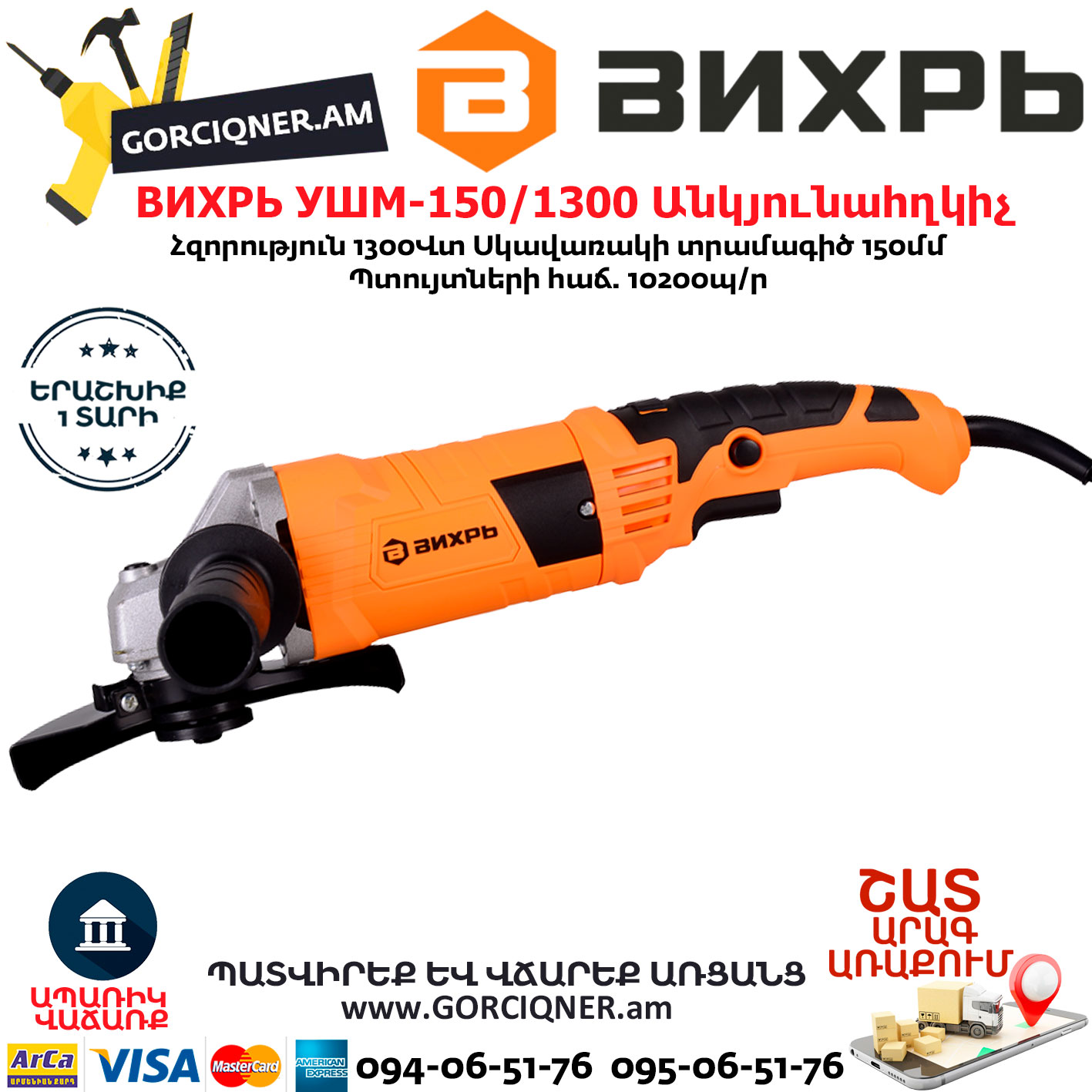 ВИХРЬ УШМ-150/1300 Углошлифовальная машина 150мм/1300вт